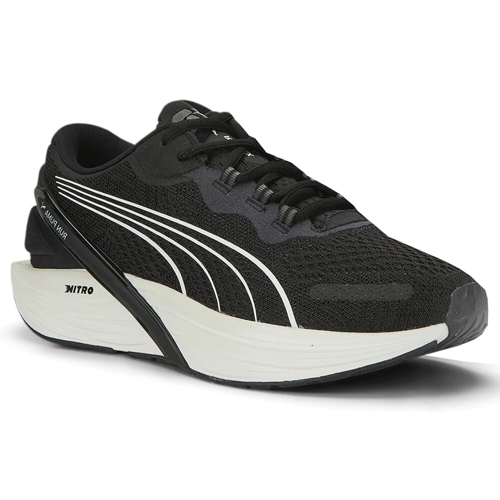 Run XX NITRO Nova Shine Running Shoes Product Details Engineered mesh upper that provides breathability so you can stay cool and comfortable Lace up closure for a secure fit NITRO foam midsole for a lightweight and comfortable ride in every step Durable rubber outsole that provides optimal traction and durability Named for the woman-specific double X chromosome DNA sequence, the Run XX NITRO running shoes stands behind our RUN FOR HER motto with a progressive, female-specific design. The running shoe features an updated fit that hugs a woman’s foot at the heel, instep, and arch, as well as a firmer NITRO midsole that provides cushioning over any distance. RUNGUIDE rounds things off by promoting proper alignment and increased stability. Additional Details Color: Black Occasion: Casual Gender: Womens Age: Adult Brand: Puma