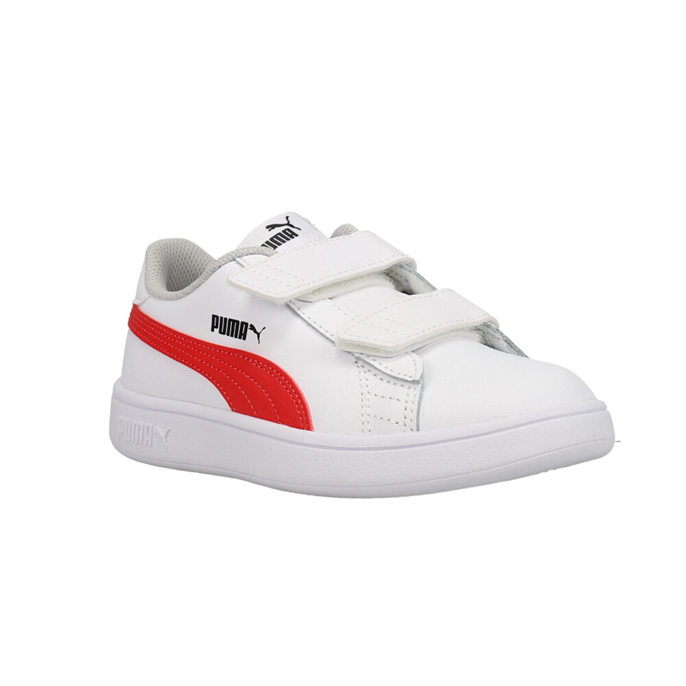 Smash V2 Slip On Sneakers (Little Kid) Product Details Leather upper Slip on entry with hook and loop closure Cushioned footbed Non-marking rubber outsole This is as small, and adorable, as PUMA Smashes come. For active kids, these are a great pick. Originally designed for tennis courts, we’ve taken a great sports classic and updated it with a bit of cushier comfort and a kid-friendly fit. We’re pretty sure they’ll be a big hit. Additional Details Color: White Occasion: Casual Gender: Boys Age: Youth Brand: Puma