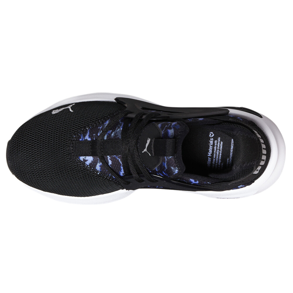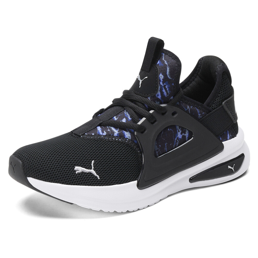 Softride Enzo Evo Abstract Lace Up Sneakers Product Details Mesh upper Lace up closure for snug fit Cushioned footbed for on going comfort Rubber outsole With an eye-catching abstract design, these sneakers are a bold statement piece that effortlessly elevates any outfit. The abstract pattern adds a touch of artistic flair, making them a must-have for fashionistas who want to express their unique style. Additional Details Color: Black Occasion: Casual Gender: Womens Age: Adult Brand: Puma