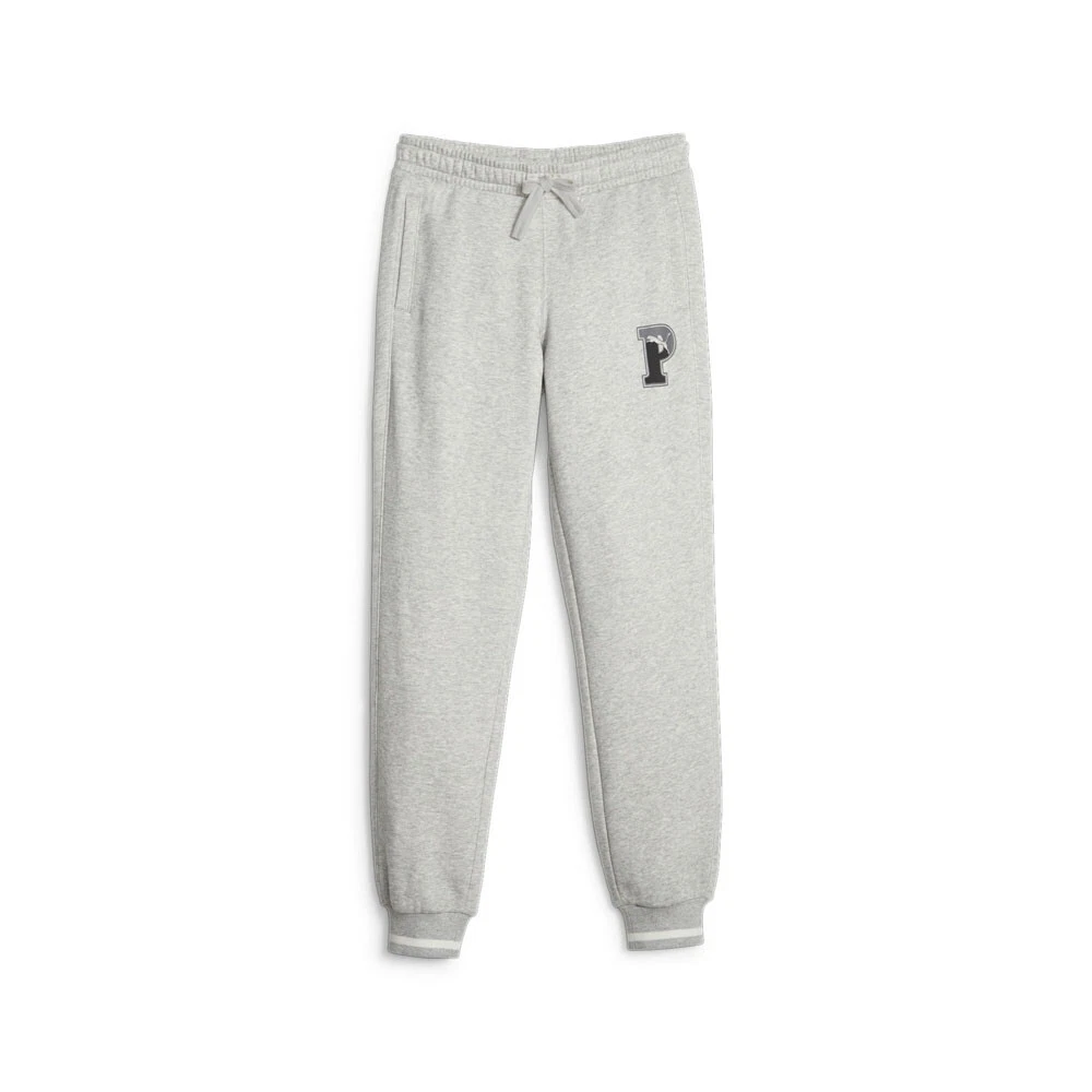 Squad Sweatpants (Youth) Product Details Elasticated waistband with external drawcord 2 welt pockets Ribbed cuffs Graphic rubber & suede print on left leg 66% Cotton, 34% Polyester Rooted in varsity trends and the best of classic collegiate style, our PUMA Squad collection is here to serve. Show you're part of the squad with these sweatpants featuring retro-inspired PUMA logo on the leg. Additional Details Color: Grey Occasion: Casual Gender: Girls Age: Youth Brand: Puma