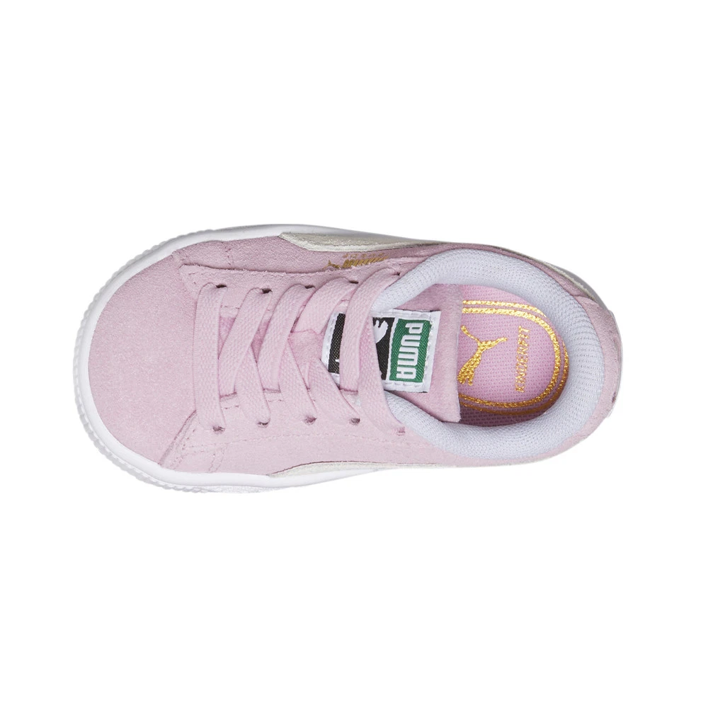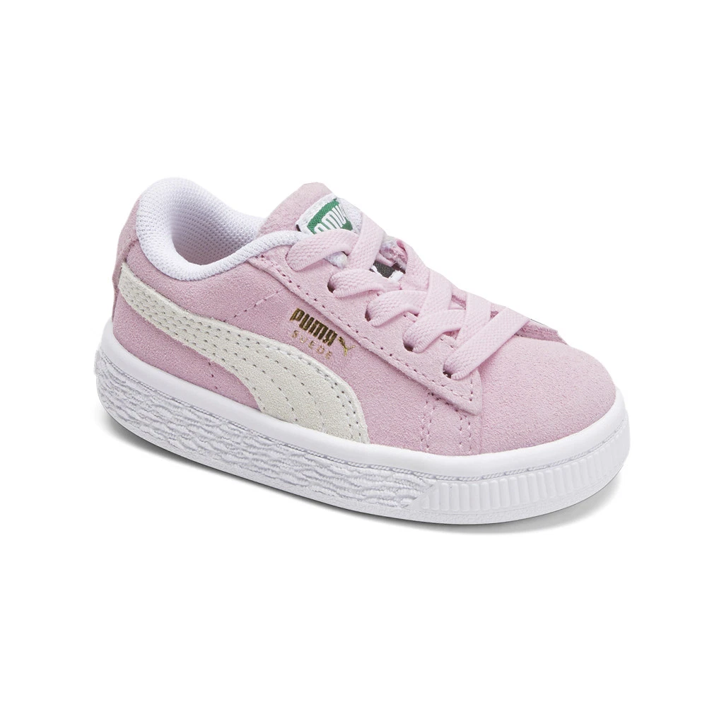 Suede Classic XXI AC Slip On Sneakers (Toddler-Little Kid) Product Details Suede upper Slip on entry with elastic laces Rubber midsole Non-marking rubber outsole The Suede hit the scene in 1968 and has been changing the game ever since. It’s been worn by the icons of every generation and it’s stayed classic through it all. This year, we relaunch the Suede with fresh colorways and subtle design updates for the next generation of icons. Classic as ever. Additional Details Color: Pink Occasion: Casual Gender: Girls Age: Youth Brand: Puma
