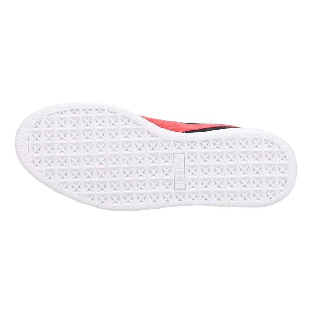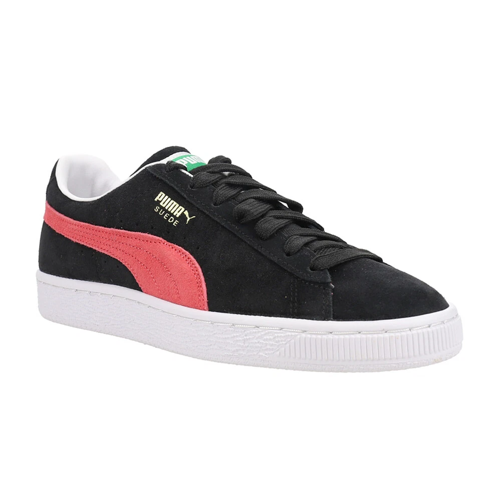 Suede Classic XXI Lace Up Sneakers Product Details Suede upper Synthetic leather lining Rubber midsole Rubber outsole First hitting the scene in 1968, the iconic Puma Suede Classic XXI is introduced in an updated rendition. Featuring a suede low-top silhouette, the signature full suede upper is still in place. Synthetic leather comprises the lining, while the comfortable sockliner provides optimal comfort with each step. A rubber midsole and outsole offer optimal traction and durability, while gold metallic foil PUMA is placed at the laterals. PUMA Formstrips at the side with perforated detailing completes the design. Additional Details Color: Black, Pink Occasion: Casual Gender: Womens Age: Adult Brand: Puma