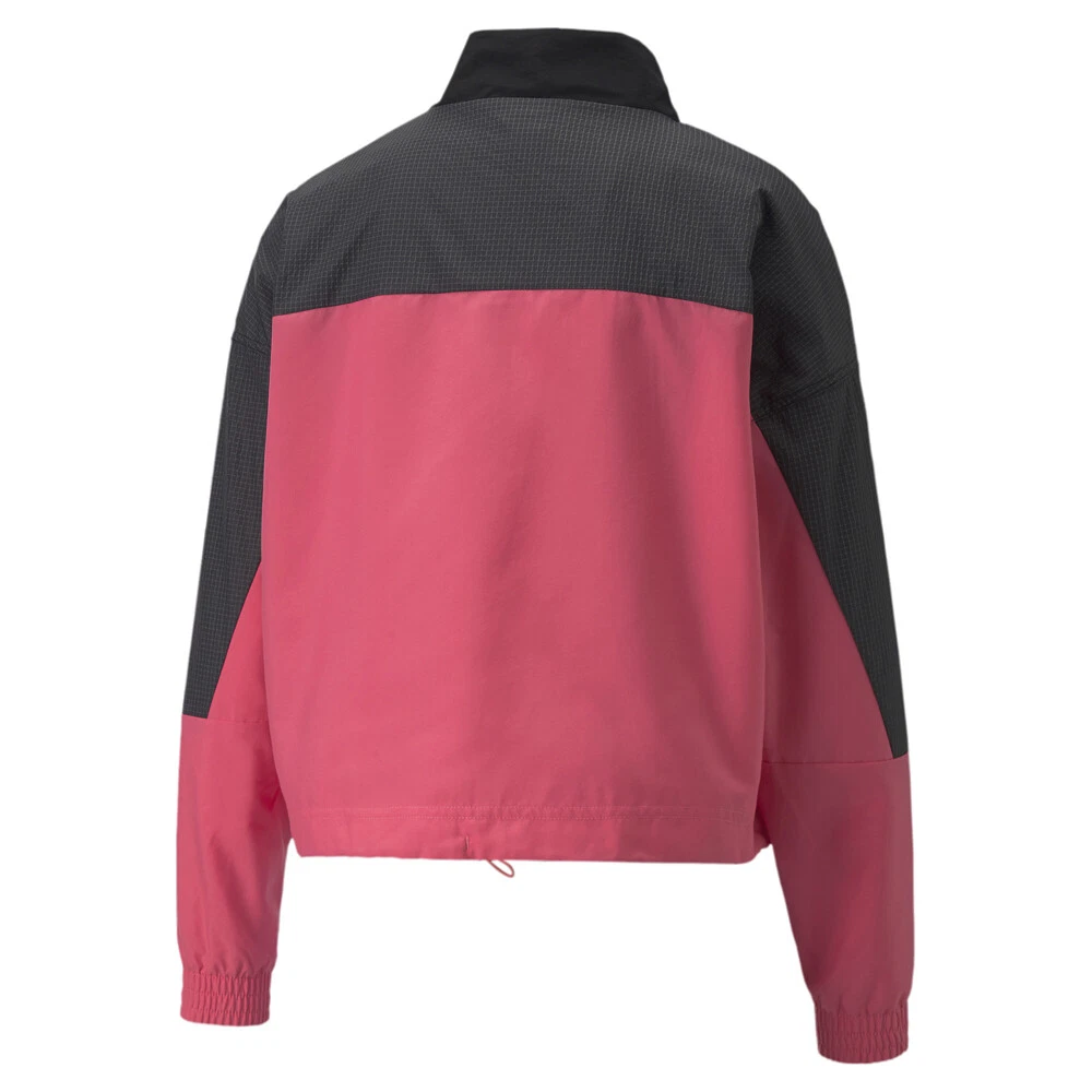 SWxP Relaxed Half Zip Woven Jacket Product Details Pouch pocket Elasticated cuffs Adjustable bungee toggle on hem PUMA logo embroidered on chest 100% polyester A nod to PUMA's proud sportswear heritage, the SWxP collection adds urban influence to archival for a fresh and vibrant spin on more classic silhouettes. Made using recycled fabrics, featuring a boxy fit with an adjustable hem, two-tone aesthetics, bold branding and a retro-inspired vibe, this slick jacket adds eye-catching to athletic. Additional Details Color: Pink Occasion: Casual Gender: Womens Age: Adult Brand: Puma