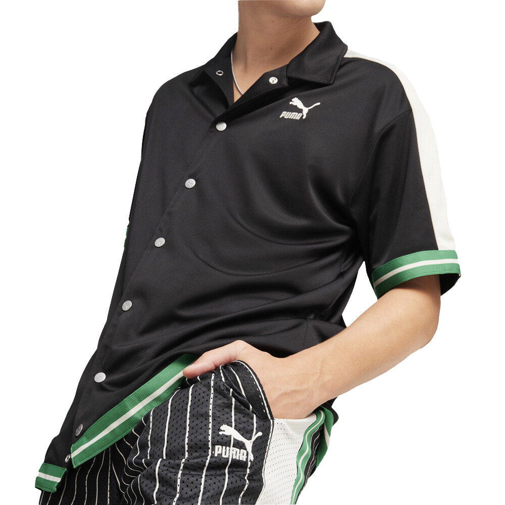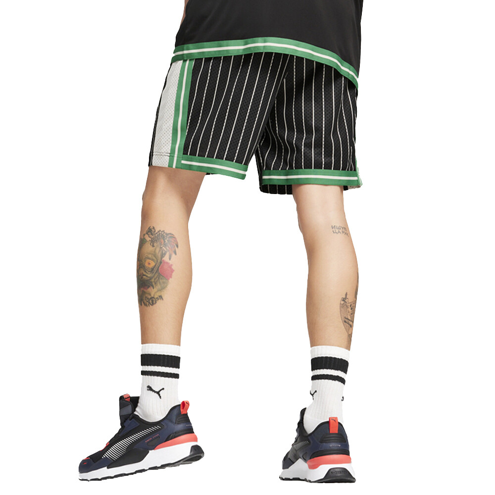 T7 For The Fanbase 7 Inch Mesh Shorts Product Details Relaxed fit 140 gsm, mesh material Elastic waistband with external drawcord Side seam pockets Knitted tape at back of T7 panel and back hem Straight out of the '70s PUMA Archives, the T7 gets a fresh update, and this time we've reworked the OG track pants with a much more relaxed vibe as a pair of mesh shorts. It features a loose fit and mesh material. Of course, the signature stripes are still on the sides. Additional Details Color: Black Occasion: Casual Gender: Mens Age: Adult Brand: Puma