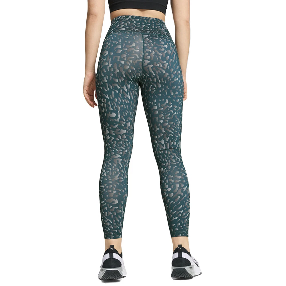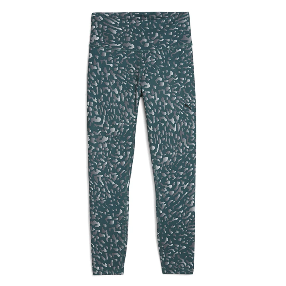 Train Fave High Waisted 7/8 Graphic Training Athletic Leggings Product Details Tight fit Fabric: Jersey Medium rise 7/8 Length All-over print We designed your go-to training tights and added a bold all-over print graphic inspired by designs found in our environment. The tights are cut to 7/8ths length and the material is treated to wick away moisture, keeping you dry during your training sessions. Additional Details Color: Green Occasion: Casual Gender: Womens Age: Adult Brand: Puma