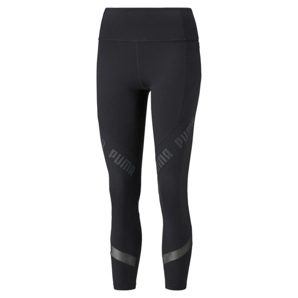 Train Logo Eversculpt High Waist 7/8 Athletic Leggings Product Details Tight fit 7/8 Length Discreet pocket that wraps around sides and back of waistband Repeating PUMA Wordmark 77% polyester, 23% elastane Train hard, look great. These sleek-fitting training leggings are infused with PUMA's signature moisture-wicking quick dry technology and feature strategically placed mesh inserts to keep you feeling cool and fresh even in your toughest workouts. Including a neat and discreet pocket that wraps around the sides and back of the waistband and added a bold repeating PUMA Wordmark graphic for stand-out sporty style. Additional Details Color: Black Occasion: Casual Gender: Womens Age: Adult Brand: Puma