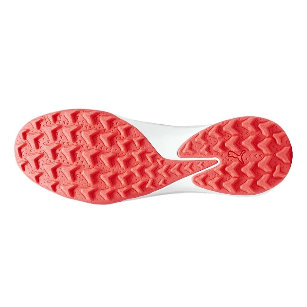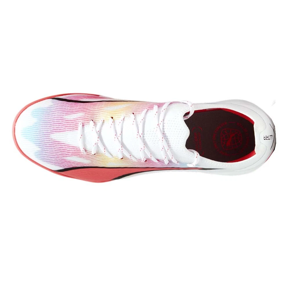 Ultra Ultimate Cage Soccer Shoes Product Details The upper is made from ultra-light ULTRAWEAVE textile fabric with a 4-way stretch structure to help reduce weight and friction Shoe collar and tongue are made from woven fabric with high elasticity, creating a firm hug for the ankle area Shoe lining surface is equipped with NanoGrip technology to help reduce the movement of the foot in the shoe during high-intensity competition High-quality EVA cushioning provides comfort in every step and supports acceleration situations, while also limiting the reaction force from the artificial turf surface on the knee joints and heels The outsole is made from high-quality rubber with arrow-shaped studs to help reduce weight, increase grip, and support the ability to turn in narrow spaces PUMA ULTRA ULTIMATE CAGE is back with significant improvements compared to the previous version, to bring a more confident and explosive experience to the wearer during football play. Additional Details Color: White Occasion: Casual Gender: Mens Age: Adult Brand: Puma