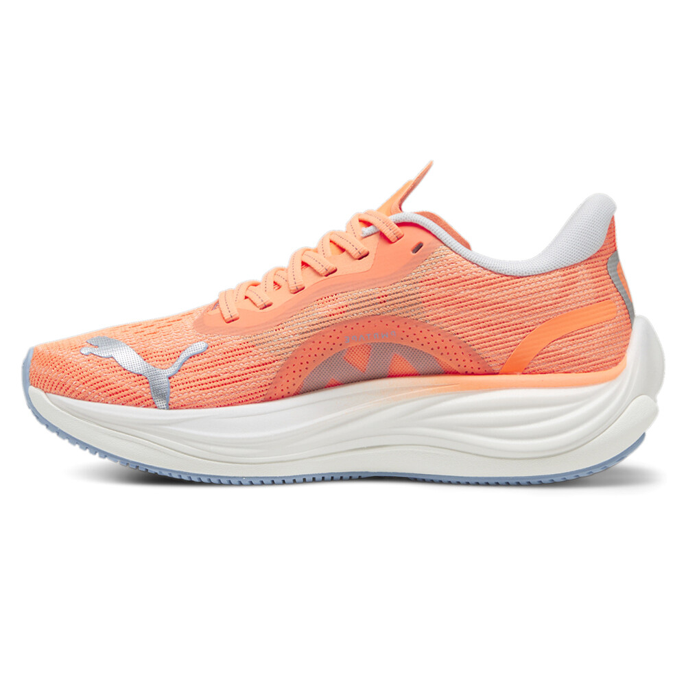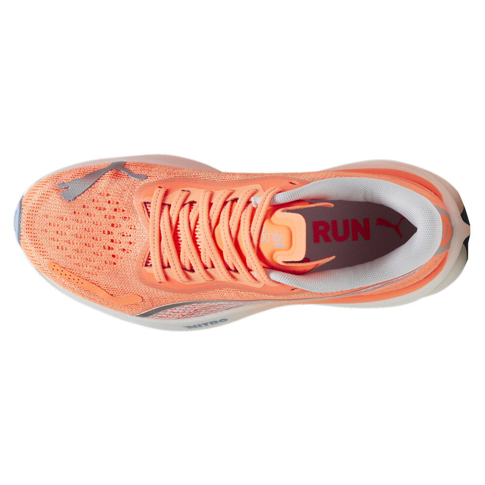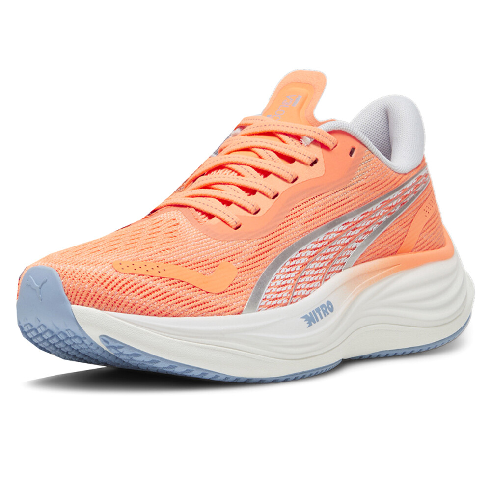 Velocity Nitro 3 Lace Up Running Shoes Product Details Cushioning level: medium Lace closure Heel-to-toe drop: 8mm Pronation level: Neutral PUMA branding details The PUMA Velocity NITRO 3 – with this shoe, they're taking industry-best and bringing it to you. These kicks are all about speed and comfort thanks to advanced NITRO technology, offering superior responsiveness and cushioning in a lightweight package that feels like you're running on clouds. Plus, with the heel spoiler, you not only get a sleek look but you'll also benefit from enhanced stability for confident strides. Get ready to up your running game with the Velocity NITRO 3. It's not just a shoe; it's a statement. Additional Details Color: Orange Occasion: Casual Gender: Womens Age: Adult Brand: Puma