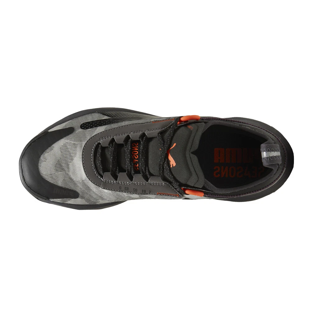 Voyage Nitro 3 GTX Trail Running Shoes Product Details Gore-Tex waterproof membrane that keeps your feet dry and warm while still providing optimum breathability Flared midfoot shape to give improved ankle support on uncertain terrain With a semi-curved last based on biomechanical research, executed on a breathable mono-mesh upper with a booty-construction to keep dirt out NITRO Foam midsole with PROFOAMLITE layer for extra support Rubber outsole with PUMAGRIP ATR for traction and lateral arch flare for additional stability A trail running shoe made for maximum cushioning: the Voyage NITRO 3 Gore-Tex. Thanks to the breathable Gore-Tex construction, your feet will stay dry in wet conditions. This running shoe features the first full-length NITRO Foam midsole, which makes it even lighter and more responsive. For optimal grip, the outsole combines PUMAGRIP-ATR and PWRADAPT, meaning that the lugs move independently with the ground to give you the best traction on multi-terrain and weather conditions. Are you ready for your run? Additional Details Color: Grey Occasion: Athletic Gender: Mens Age: Adult Brand: Puma
