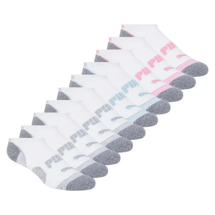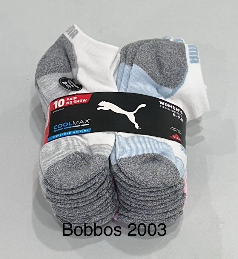 Puma Women's 10 Pair No-Show Cool Max Socks Size: 5 - 9.5 Color: Multicolor Content: 50% Polyester / 48% Cool Max Polyester / 2% Lycra Spandex