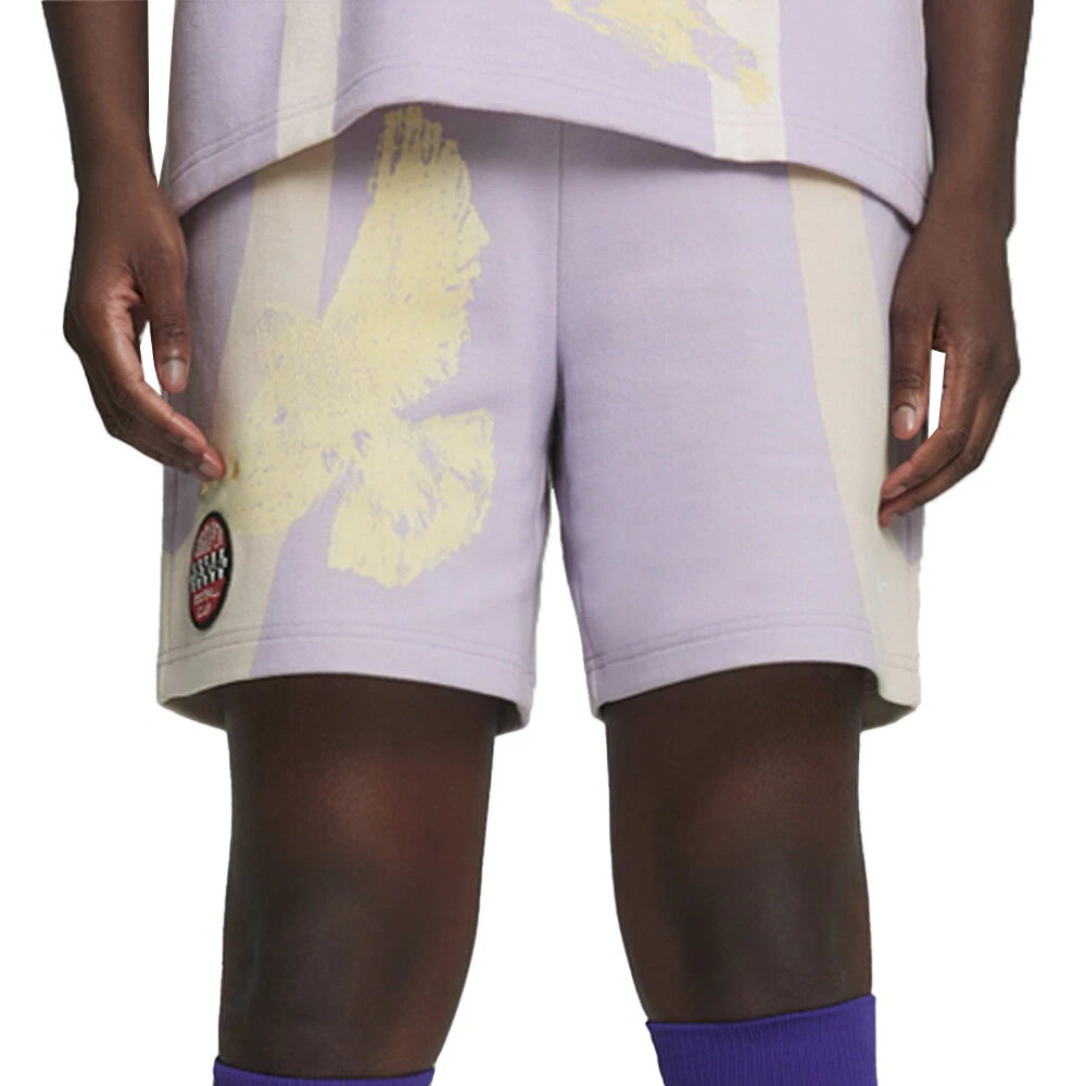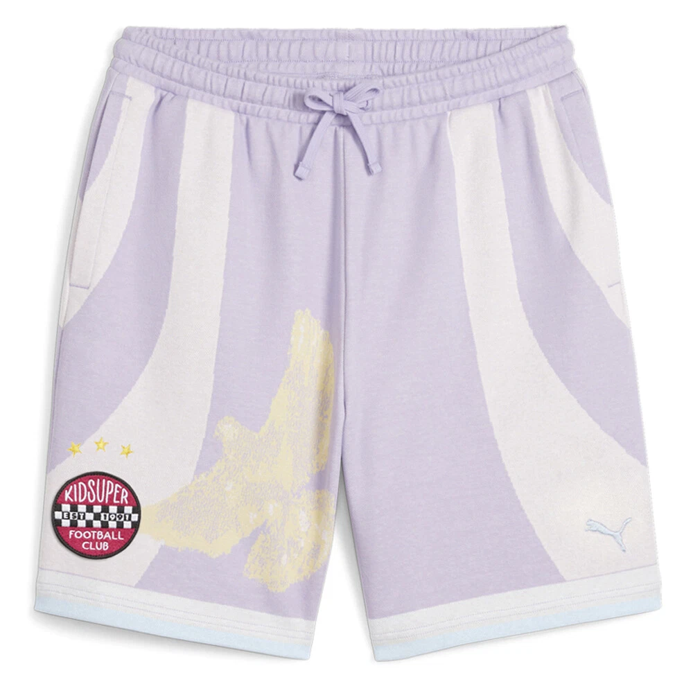 Puma x Kidsuper Drawstring Shorts Product Details Relaxed fit 315gsm, double face jacquard Elasticated waistband with internal drawstring Side pockets PUMA and KidSuper branding details PUMA teams up once again with KidSuper for an exciting new collection, the KidSuper Sports Club. Founder Colm Dillane is an ex professional footballer, designer, artist, director, and much more. Inspired by his passion for football, the collection features elevated designs, athletic details and all the design hallmarks of KidSuper. Additional Details Color: Purple Occasion: Casual Gender: Mens Age: Adult Brand: Puma