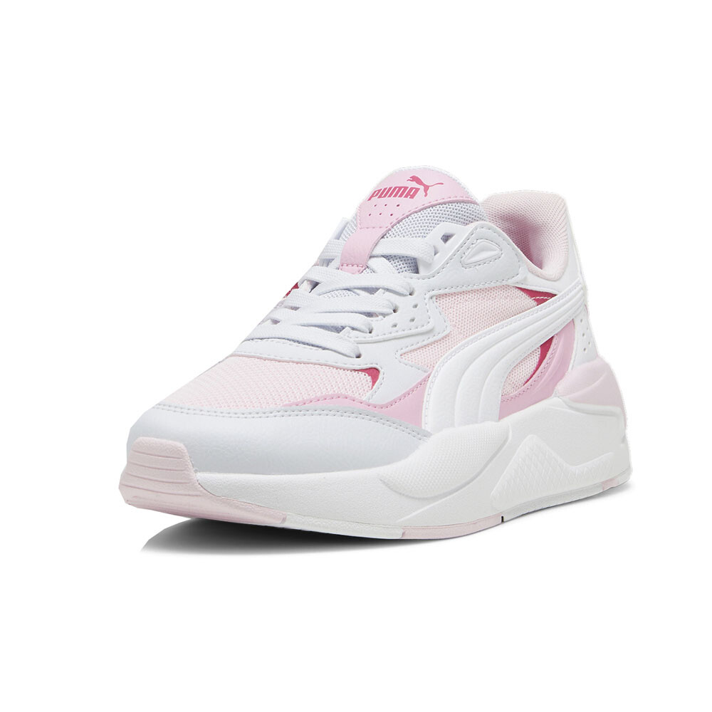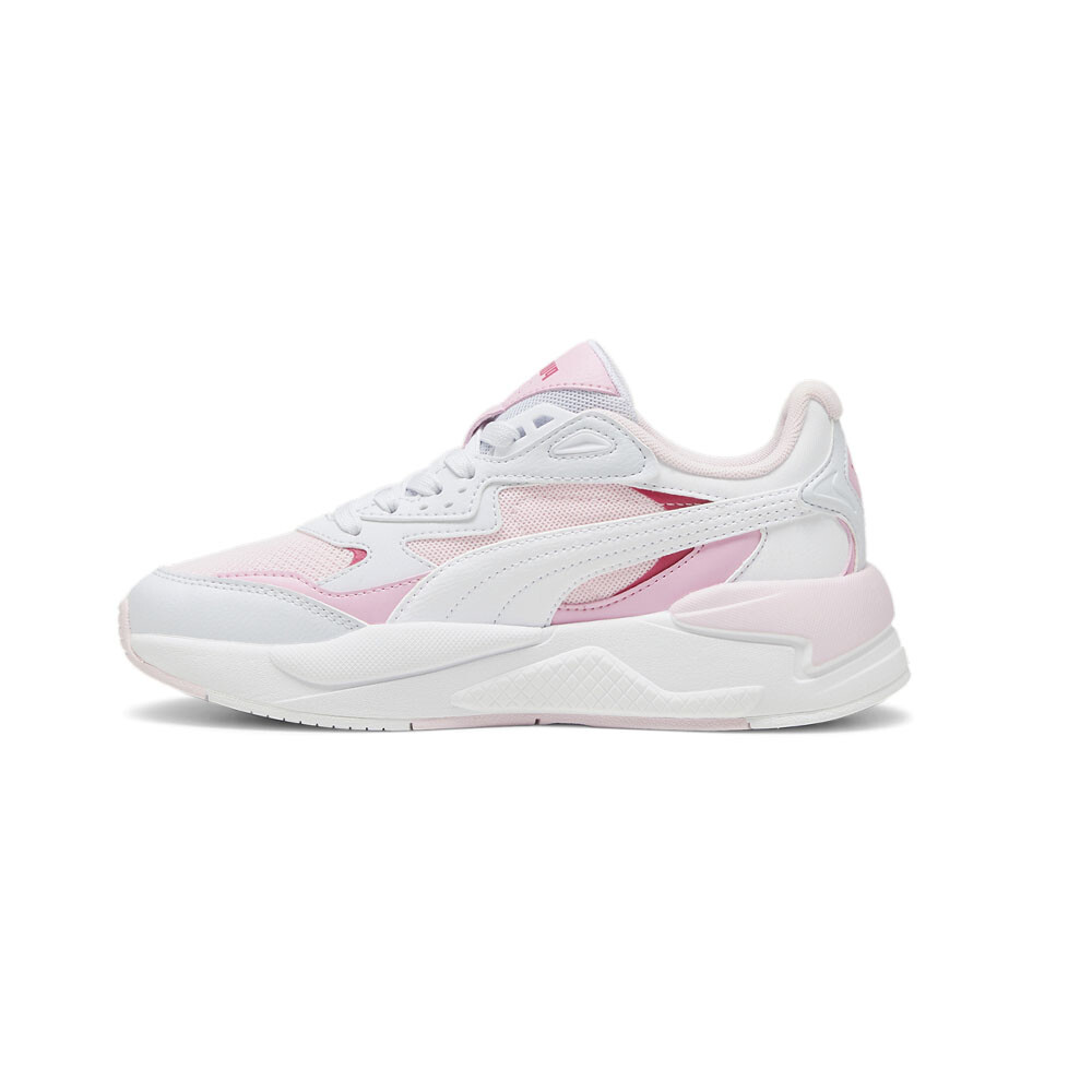 X-Ray Speed Lace Up Sneakers (Big Kid) Product Details Low boot construction Mesh upper with synthetic overlays Mesh tongue Lace closure Thermoplastic polyurethane eyelet piece Crisp, futuristic fashion comes to you in a new form with the X-Ray Sneakers. These stunning X-Ray Speed Sneakers feature dramatic, high-contrast color stories, the intrigue of mixed textile overlays and the unparalleled comfort and superior cushioning of the Soft Foam Plus sockliner to arm you with all you need to stride in comfort and style. Additional Details Color: Pink, White Occasion: Casual Gender: Girls Age: Youth Brand: Puma