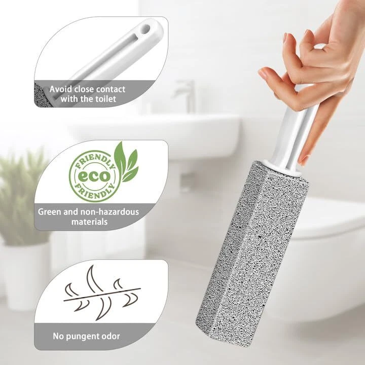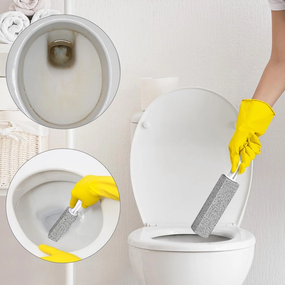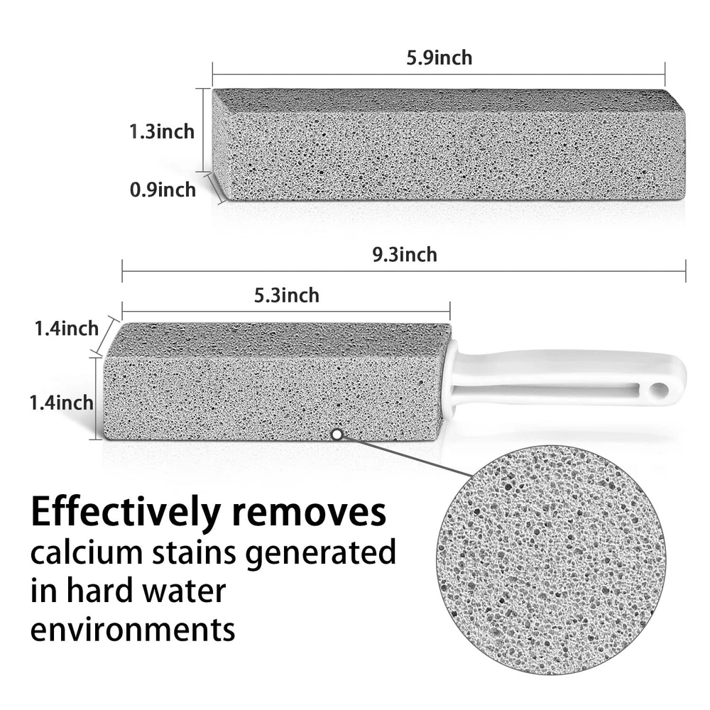 Convenient and Effective: Our pumice stone makes toilet cleaning a breeze. The scouring stick effectively tackles stubborn stains, effortlessly removing calcium buildup, rust, grease, and other deposits to ensure superior cleanliness. Quality Material: Designed specifically for toilet cleaning, these scouring sticks are made of odorless and non-pumice stone. They are more durable and effective than traditional toilet cleaning tools, and they won't scratch your toilet bowl, providing a perfect solution for persistent stains. Versatile Cleaning Tool: This set of 7 pumice stone toilet bowl cleaners is perfect for various surfaces, including tile, ovens, stoves, toilets, and other ceramic surfaces. Ideal for tackling tough stains in bathrooms, kitchens, and pools, these scouring sticks deliver unrivaled cleaning results. Easy to Use: The toilet pumice stone with handle are easy to use and remove hard water rings without the need for gloves. They fit comfortably in your palm, saving you time and effort. Perfect for eliminating rust stains on metal products and stubborn stains on various surfaces. Easy to Clean: These powerful pumice stones ensure a thorough and effective cleaning experience for toilet bowls. They work wonderfully on hard water stains, rust, grease, and dirt, leaving no residue behind and making your toilet bright and white.