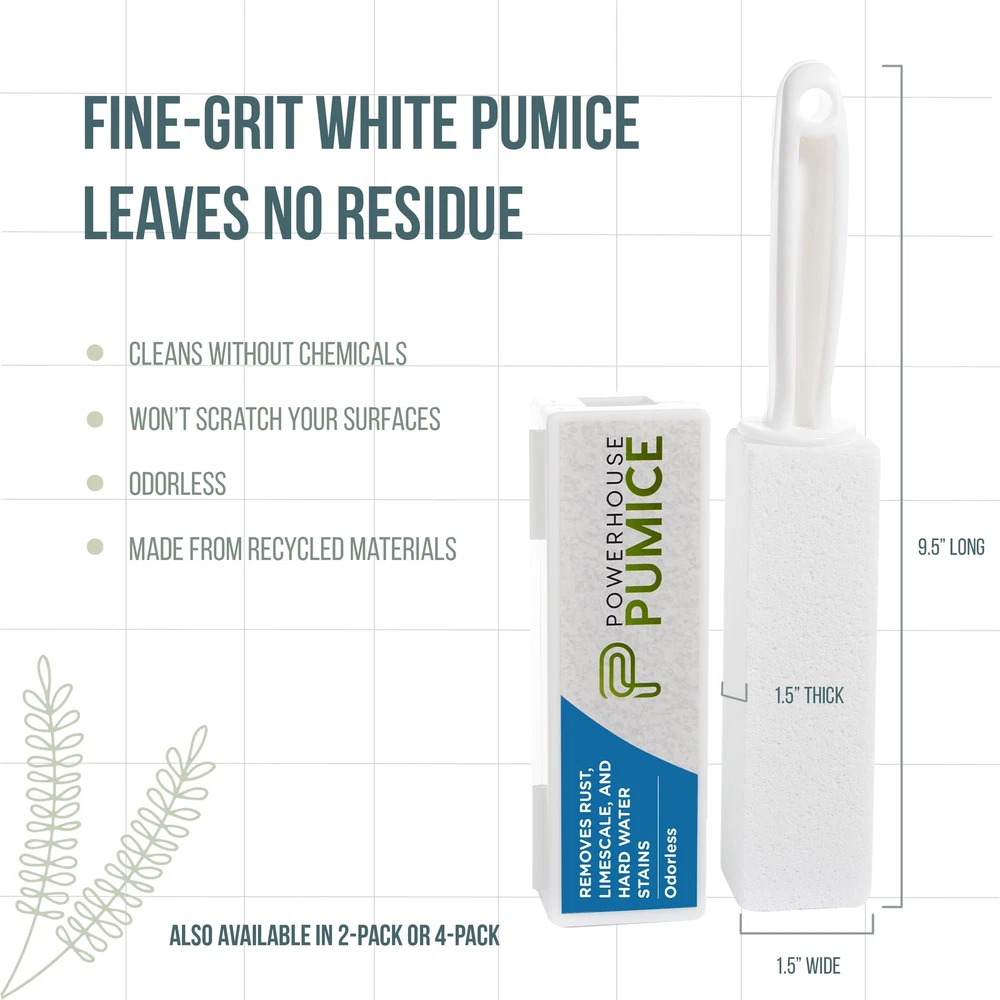 SUPERIOR CLEANING: Experience remarkable cleanliness with a pumice stone, a superb toilet cleaner for modern households. Unyielding on hard water stains and mineral deposits yet gentle on surfaces, this powerhouse tool ensures a fresh, spotless toilet every time. ALL-INCLUSIVE KIT: Boost your cleaning routine with the pumice stone (1-pack). It comes with a practical storage kit for easy drying and storage. This tool outperforms traditional toilet brushes, providing superior cleanliness and efficiency for an optimally clean toilet. TOUGH ON STAINS: The pumice stone redefines cleanliness. Tough on stains, it effortlessly removes stubborn marks, grime, and unwanted deposits. Unlike ordinary toilet brushes, it's gentle on surfaces, leaving no residue behind and ensuring a spotless, shiny toilet bowl every time. A SOLUTION FOR BUSY HOUSEHOLDS: For busy households, the pumice stone offers an ideal cleaning solution. Just like a toilet brush, it comes with a handle that eases stain removal. Its efficient and practical design makes it an essential tool, turning complicated toilet cleaning into a simple task. VERSATILE CLEANING TOOL: The pumice stone is a versatile all-rounder toilet cleaner, excellent for removing stubborn stains on toilets, sinks, tiles, and more. Its design makes cleaning easy and effective, quickly tackling stubborn grime and leaving a spotless finish wherever it's used.