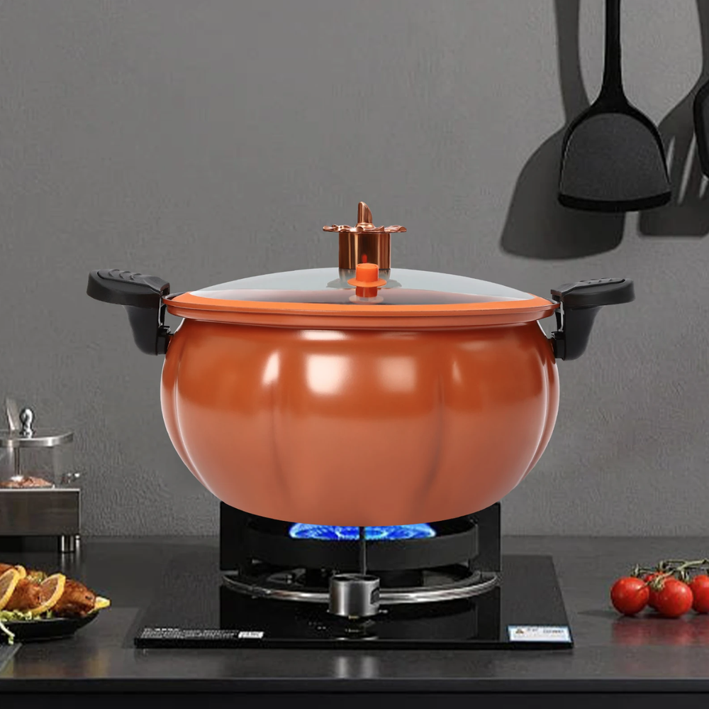 Add seasonal charm and functionality to your kitchen with this Pumpkin Cast Iron Dutch Oven Enameled Cocotte , crafted in a vibrant orange color with a whimsical pumpkin shape. With a generous 8L (2.11 gallon) capacity, this eye-catching pot is perfect for stewing, boiling, frying, and more—ideal for everything from hearty soups to holiday feasts. Made of high-quality refined iron with a maifan stone non-stick coating and spray-painting process, this modern Dutch oven is built for both beauty and performance. Its quick-heating capabilities, stylish appearance, and easy-clean features make it a must-have for your cookware collection or a thoughtful gift for the cooking enthusiast in your life. Key Features Sturdy and Durable : Crafted from refined iron with a non-stick maifan stone coating and corrosion-resistant finish. Large Capacity : 8L (2.11 gal) volume—ideal for sharing meals with family and friends. Quick & Even Heating : Flat bottom and premium construction ensure fast, consistent heat distribution. Safe & Efficient : Less pressure than traditional pressure cookers and safe lid opening during cooking. Modern Pumpkin Design : Unique orange pumpkin shape brings a stylish, festive flair to your kitchen. Easy to Clean : Non-stick surface allows for effortless cleanup with minimal water and detergent. Thoughtful Gift Idea : Perfect for holidays, housewarmings, or any cooking enthusiast. Simple Assembly : Comes with all accessories needed for easy setup and use. Specifications Color : Orange Material : Refined Iron Shape : Pumpkin Style : Modern Non-Stick Coating : Maifan Stone Process : Spray Painting Capacity : 8L / 2.11 Gallons Product Size (L×H) : 38×22cm / 14.96×8.66in Pot Diameter : 28cm / 11.02in Bottom Diameter : 18cm / 7.09in Pot Depth : 14cm / 5.51in Package Size : 28×27.9×16cm / 11.02×10.98×6.3in Gross Weight : 1.5kg / 3.3lbs Net Weight : 1.4kg / 3.08lbs Dishwasher Safe : No Assembly Required : Yes Package Includes 1 × Pumpkin Dutch Oven 1 × Lid 1 × Lid Handle 2 × Side Handles 1 × Venting Valve 1 × English Manual Other Accessories for Assembly Application Perfect for home kitchens, dormitories, apartments, or cooking schools. Suitable for open-flame heating and gas stovetops. Important Notes For household use only. Before first use, boil water with a drop of detergent on low heat for 1–3 minutes, then rinse and dry. Clean thoroughly after use to prevent oil buildup; warm water cleaning is recommended. Use a sponge cloth (not included) to avoid damaging the non-stick coating. Manual measurement may result in 1–3cm variance. Actual colors may vary slightly due to lighting and display settings.