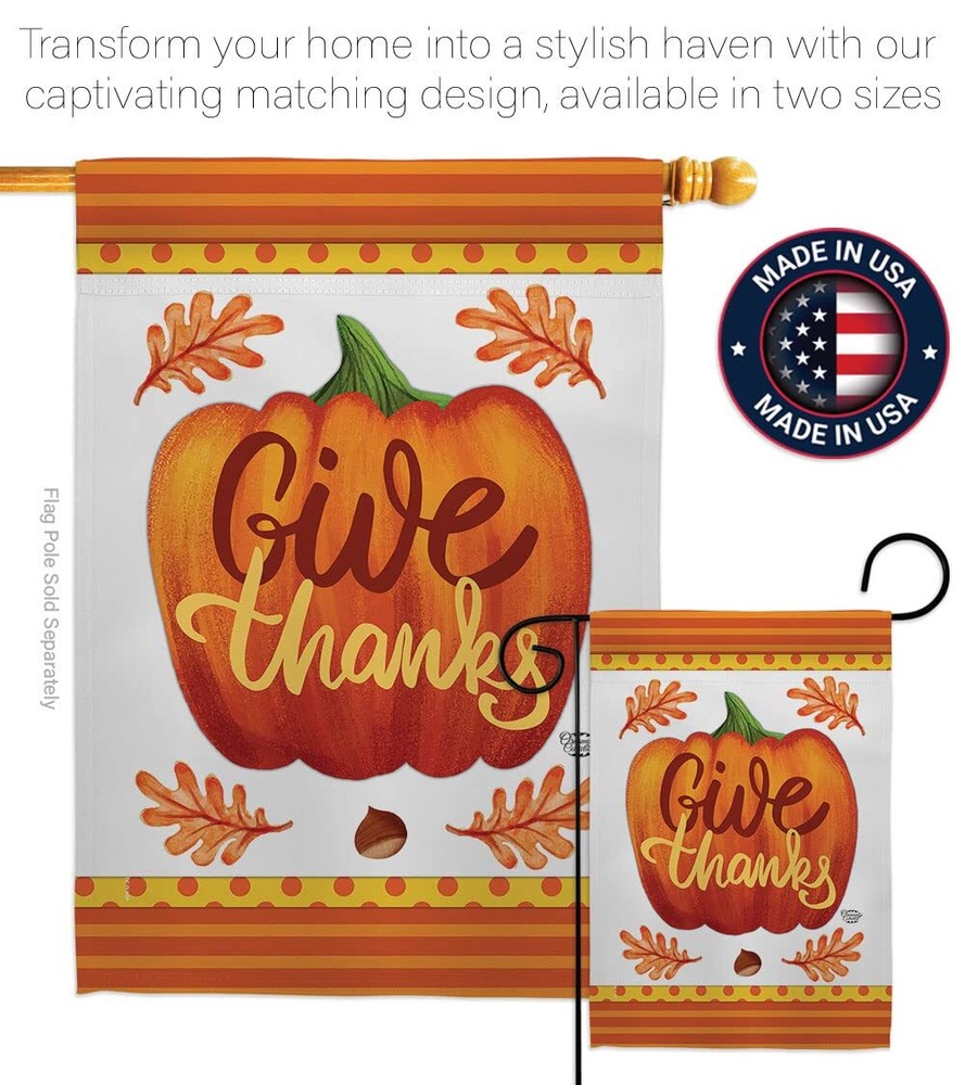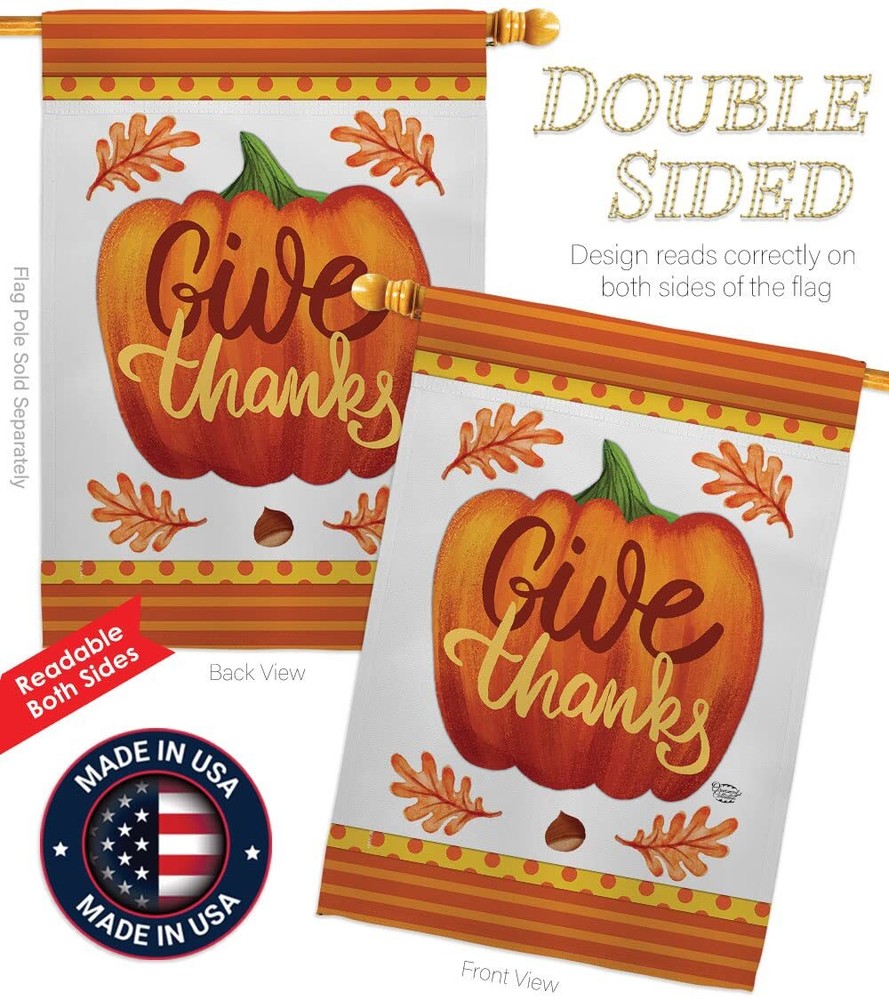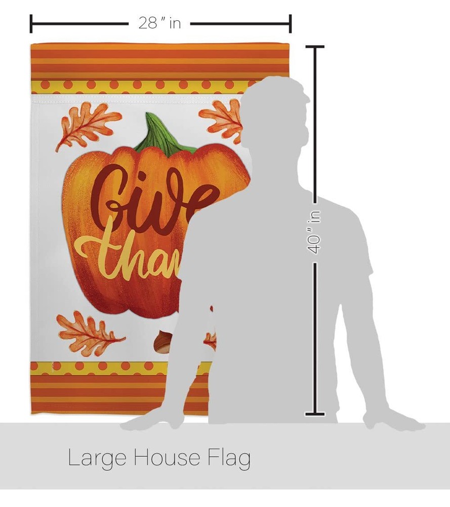 Thanksgiving Beautiful Large House Flags Pack with USA - Embroidery House Flag 28" x 48" have variety of House Flags Pack for all occasions. Uniquely design for hanging indoor or outdoor use. We are committed to offering you exceptional values. Our customers enjoy displaying our House Flags Pack for longer periods. Specification: Theme: Thanksgiving Size: House Flags Pack 28" x 40" Print: Double-Sided Readable: Readable Both Sides Material: Weather Resistant 3 Layers Blockout Stitching: Double Stitched Display: Vertical Hang Type: Sleeve Artist: © Ness Green Special Features: Origin: Made In USA Package Include: 2 pc x House Flag 28" x 40" Package Decorative Flags For more than a decade, we’ve been dedicated to manufacturing flags with no comparison in quality and beautiful designs. Our flags are made with our Guard material that is soft to the touch and designs can be read correctly on the flag. A feature that our customers will love. We are committed to using eco-friendly inks that won’t leave a foot print in our environment. MPN: OC-TG-HP-192139-IP-BOAC-D-US18-OC 92139 92139 PROUDLY Made In USA - Package And Product Designed In California PURCHASE WITH CONFIDENCE - From 's US Authorized Resellers MADE OF DURABLE -100% Thick Polyester Fabric construction helps resist the wear and tear from frequent use TEXT READABLE BOTH SIDES - House Flags Pack Double-Sided Print DURABLE FLAG - Double stitching panels on multiple rows and high quality Sleeve to provide lasting strength VIBRANT COLORS - With UV-Resistant Maintains Its Colors All Season Long FEATURES - Sleeve Hanger fits standard Banner/Flagpole, Bracket, Arbors or stand, SOLD Separately