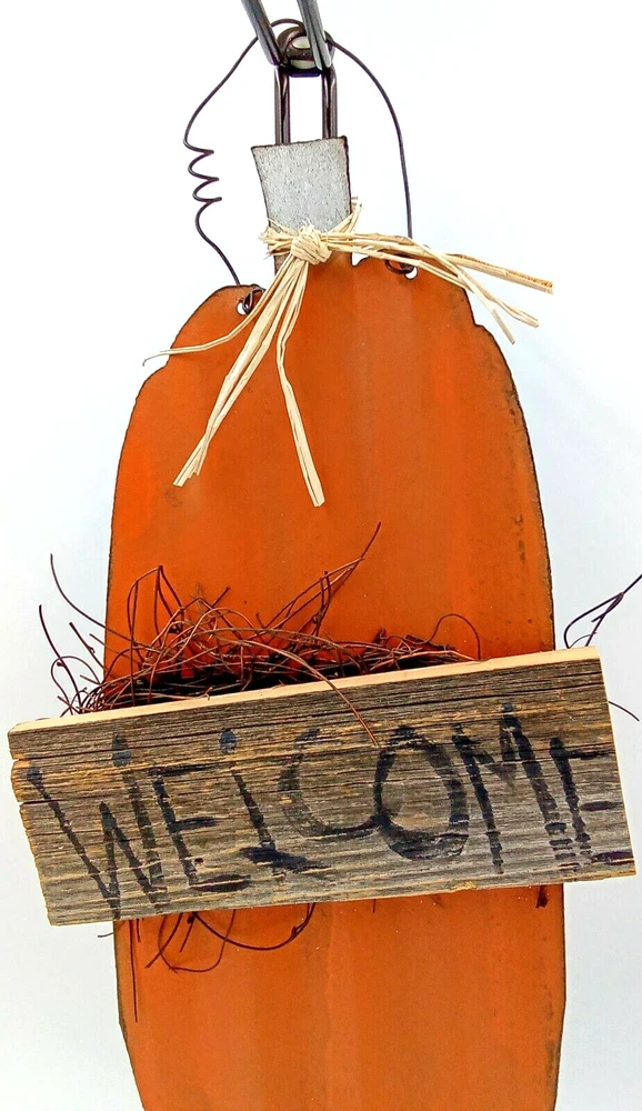 Pumpkin Metal Wood Sign Welcome Wire Hanger Orange Black Raffia Tie Branch 19.5". This is handmade in the USA. Measurements are approximately from the top of the hanger to the bottom of the sign 19.5" long x 10" wide. The pumpkin is made out of galvanized metal. The "Welcome" sentiment is in black letters on rustic aged looking wood. Branches are added behind the wood welcome sign to add to the rustic look. Raffia is tied around the metal stem. Condition is Brand New/Unused. Please check out the photos in this listing for further information. If you have any questions or concerns, please contact us. Thank you for your support! Please check out The Burly Owl Lady eBay store for more home decor goodies! Shipped USPS. We ship vintage and new items. We carefully pack with care to ensure the safety of each item. We do not pass these packaging costs onto the buyer. Furthermore, we do not charge any extra fees for handling. We only charge for the USPS shipping charge. We do monitor shipping prices frequently. In most cases, we do find the USPS to be the most inexpensive way to ship our products. We try to be as detailed as we possibly can in our photos and descriptions. We try to mention any imperfections in our vintage items. We may miss things from time to time or our photos may not be enough clarification for you to see the item. We will be glad to answer any questions or send you more photos. If at any time, you have a question or issue, please contact us immediately. We will contact you within 24 hours. We want to make sure you have a good experience in purchasing any of the products. If you are happy with your purchase, please leave feedback. It will help us to grow and offer more great items in our store! Thank you for your interest in one of the many products in our eBay store! Renee Burly Owl Lady