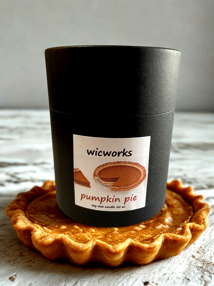 Power Source: wood wick Scent: Pumpkin, spices Country/Region of Manufacture: United States Burning Time: 40+ hours Theme: Christmas, Floral & Garden, Holiday, Romantic, Seasonal Brand: Wicworks Handmade: Yes Customized: Yes Number in Pack: 1 Type: Jar/Container Candle Size: Medium Shape: Round Features: Scented, Single Wick Style: Contemporary Item Weight: 10 oz Color: Multicolor Material: Soy Wax Room: Any