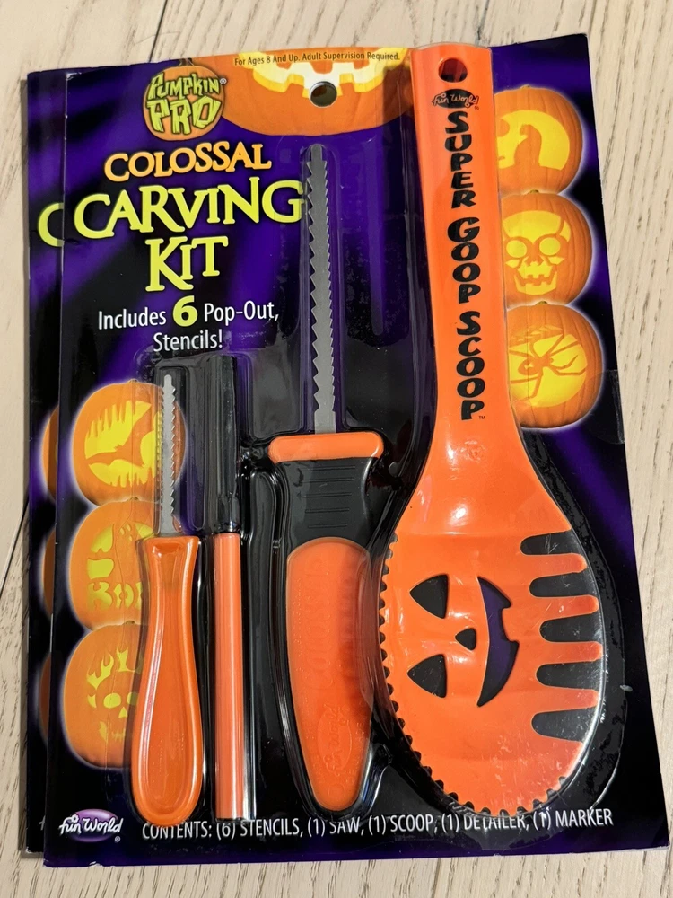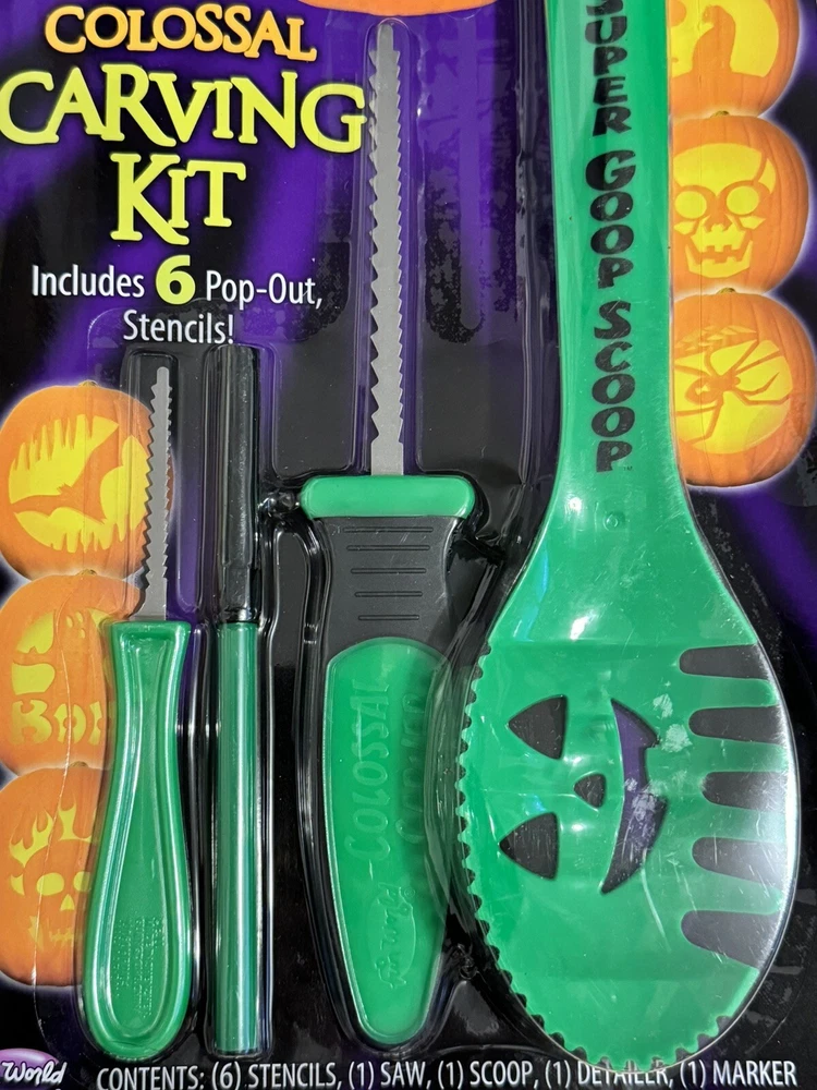 This Pumpkin Pro Colossal Carving Kit Package includes everything you need to create a stunning jack-o-lantern. The package features a durable carving tool with a green and orange colors, perfect for adding a touch of Halloween spirit to your home decor.