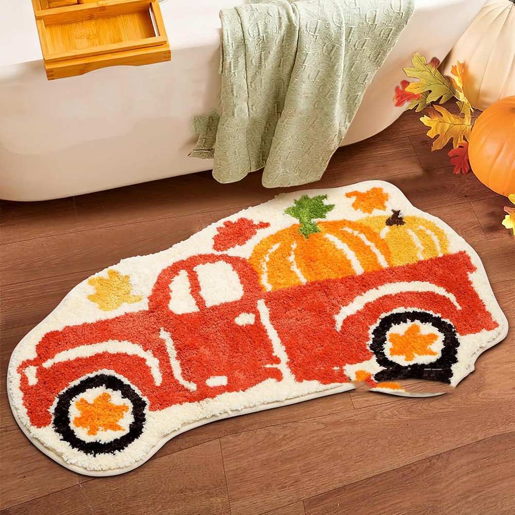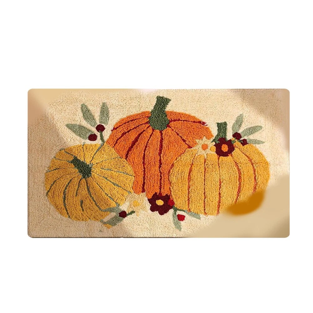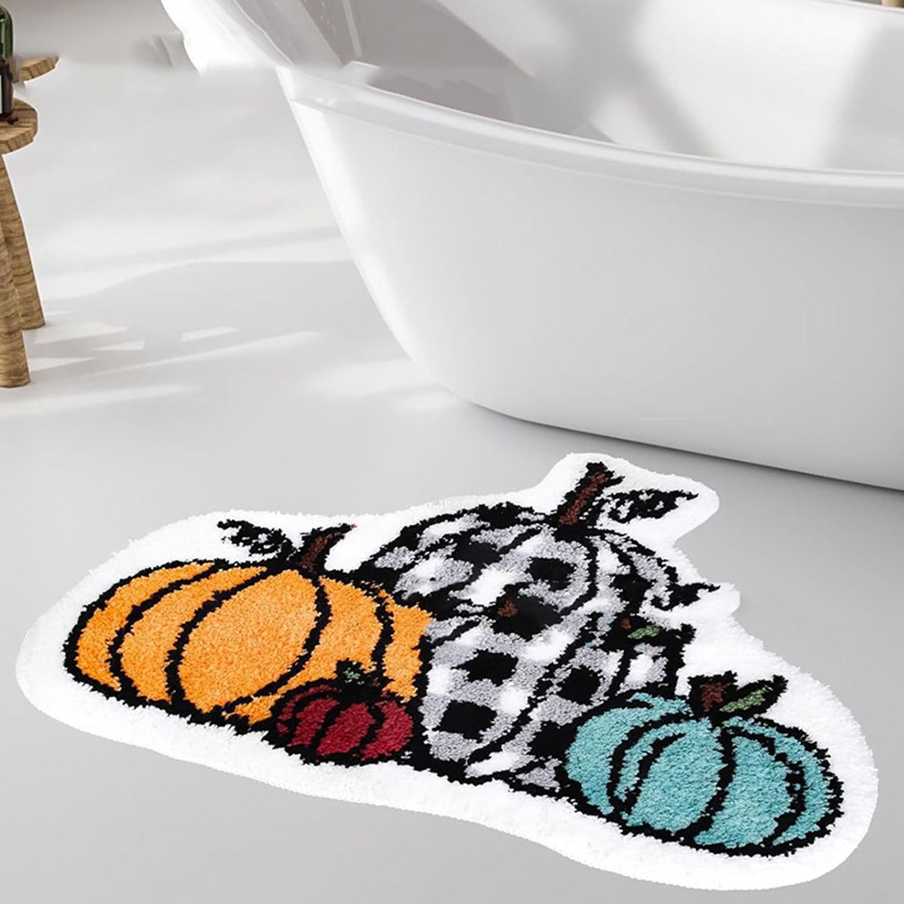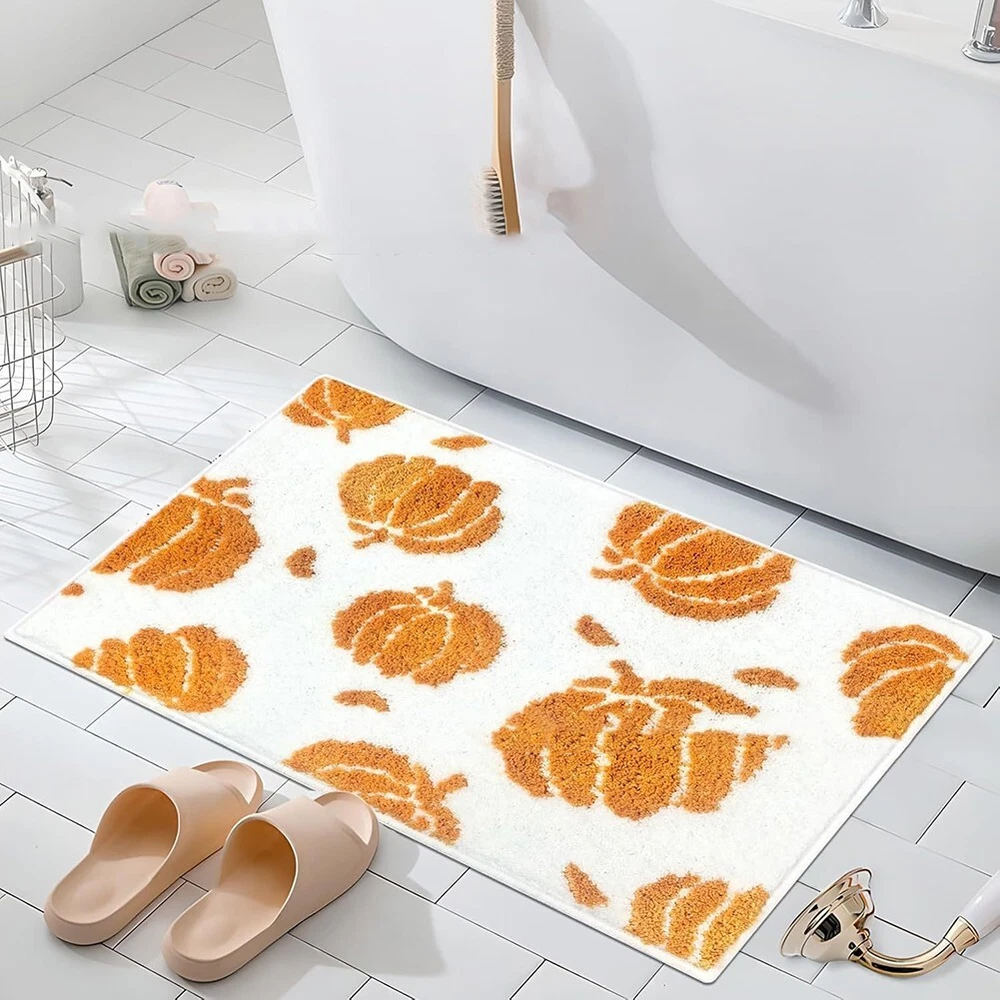 Pumpkin-Themed Microfiber Non-Slip Bath Mat for Thanksgiving Décor