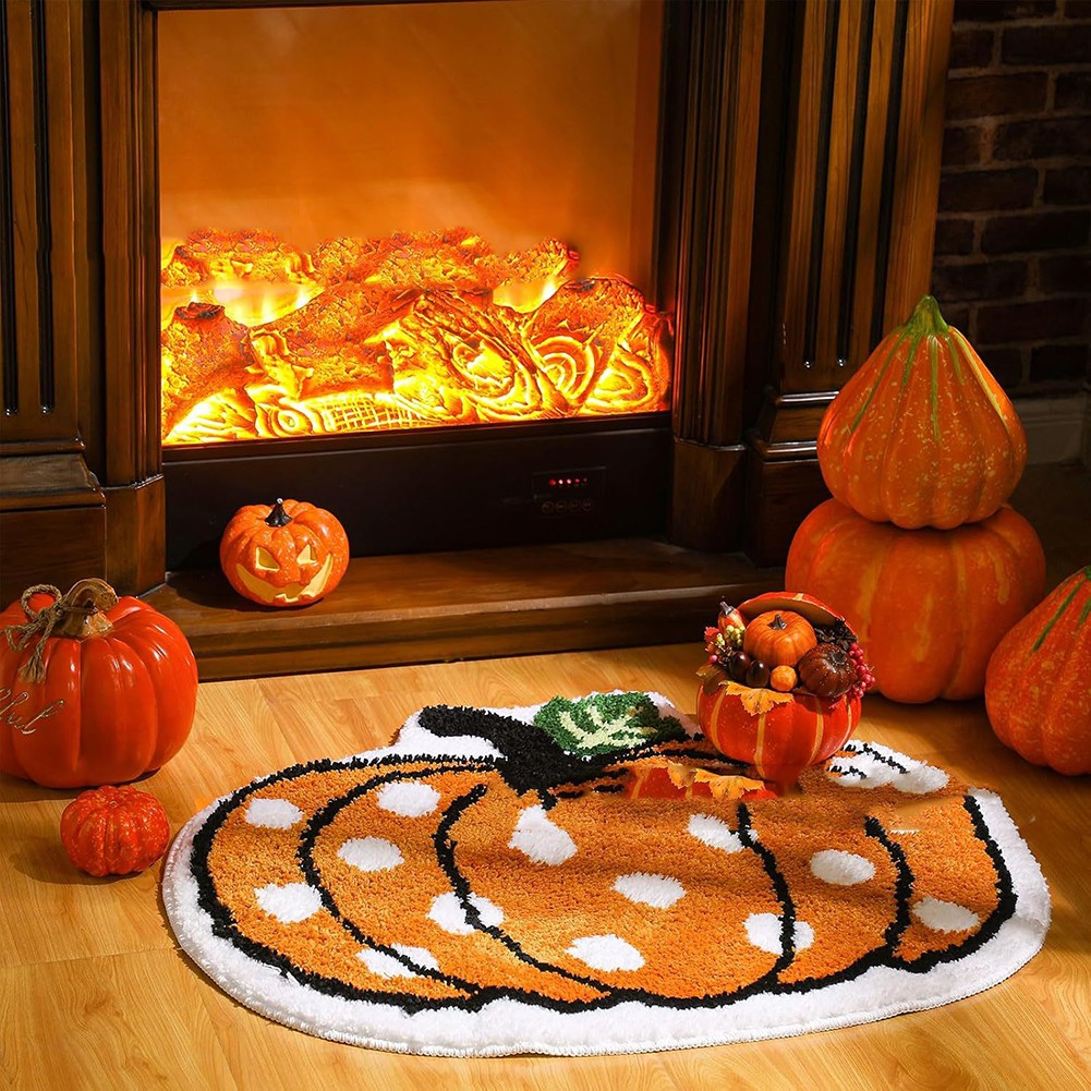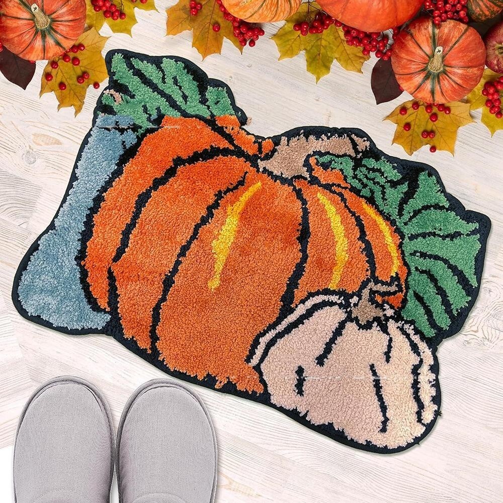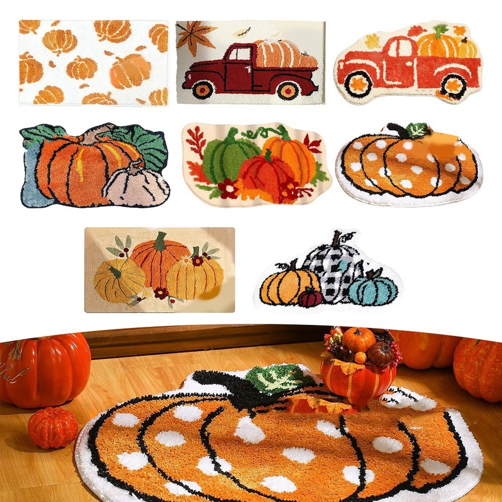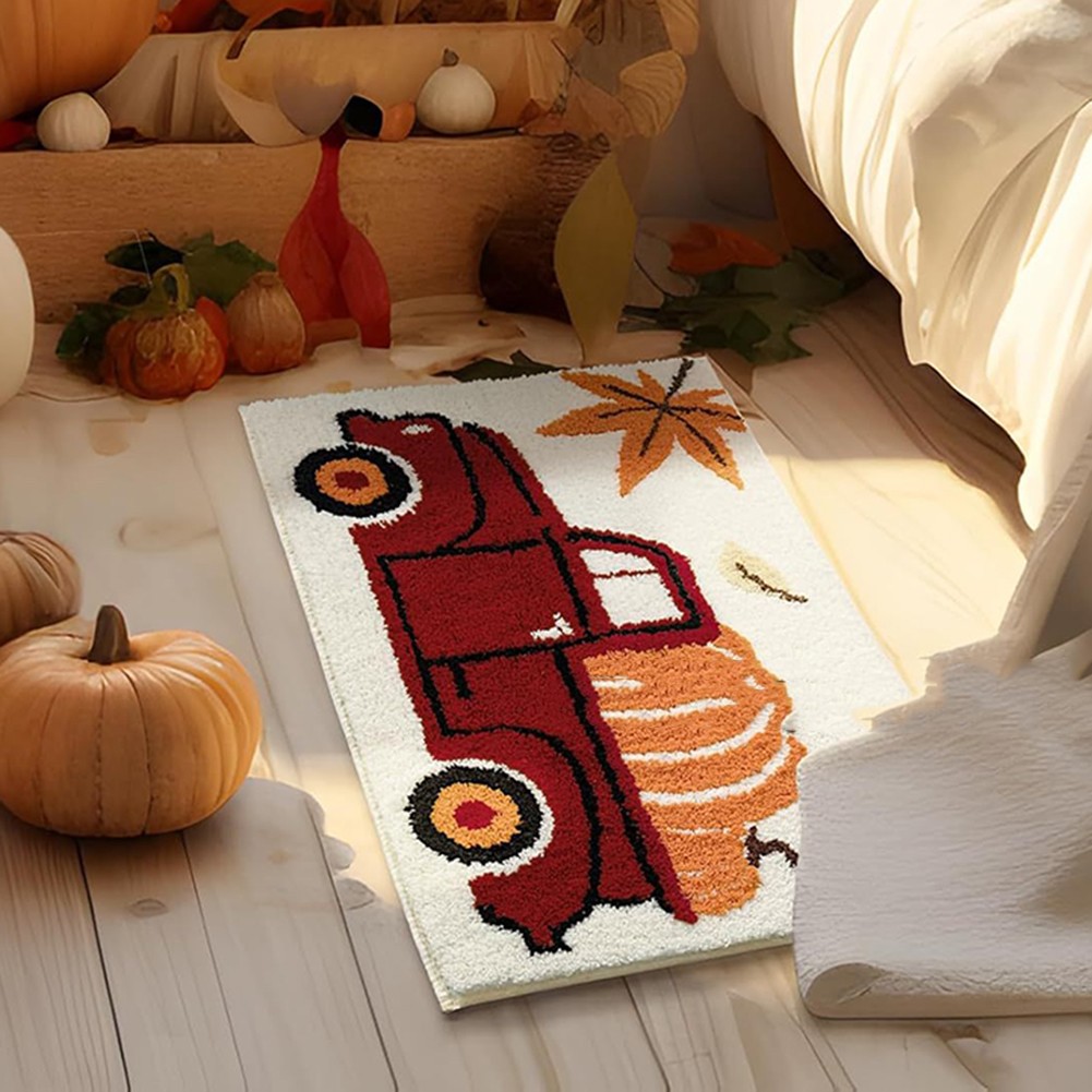 Pumpkin-Themed Microfiber Non-Slip Bath Mat for Thanksgiving Décor