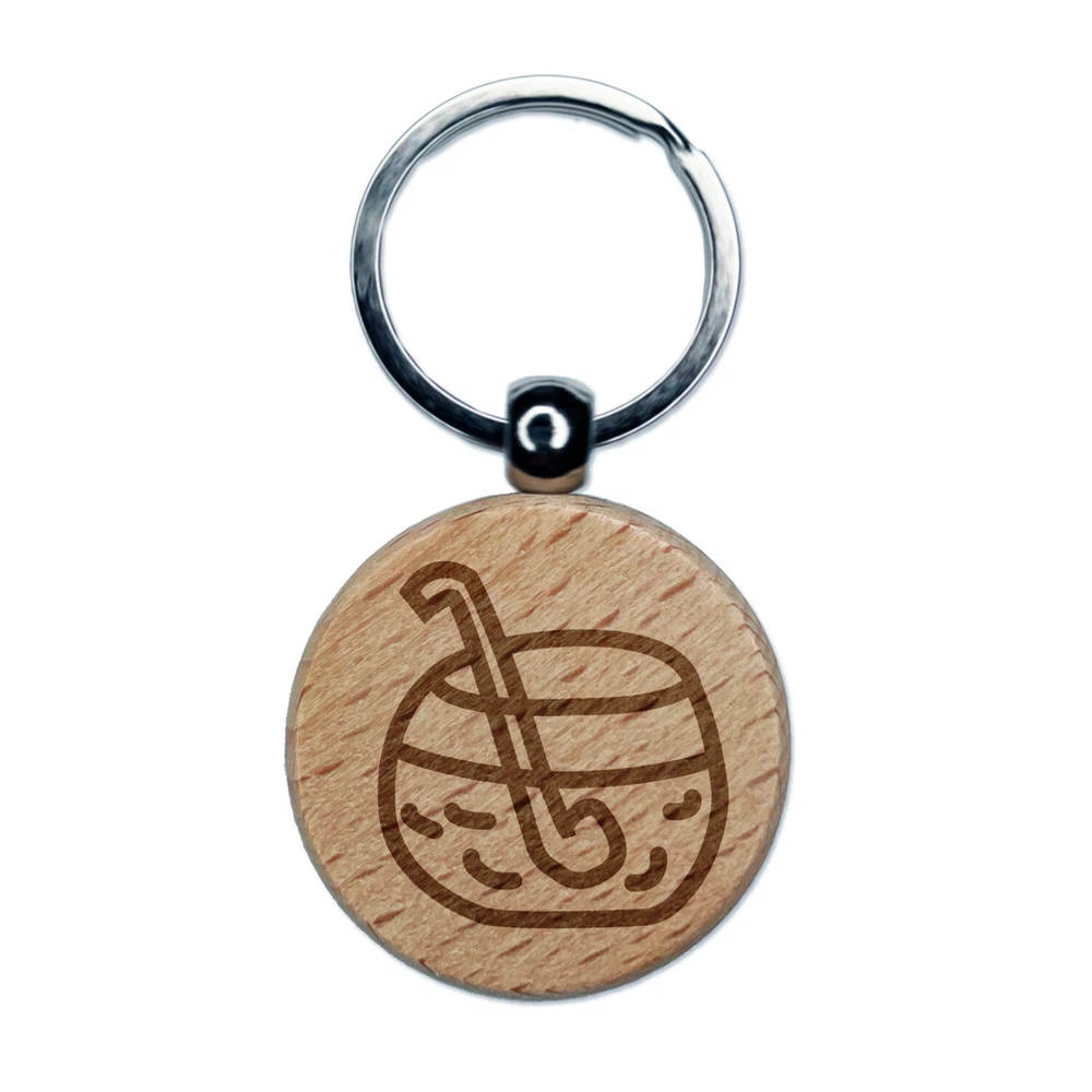 Punch Bowl Doodle Engraved Wood Round Keychain Tag Charm