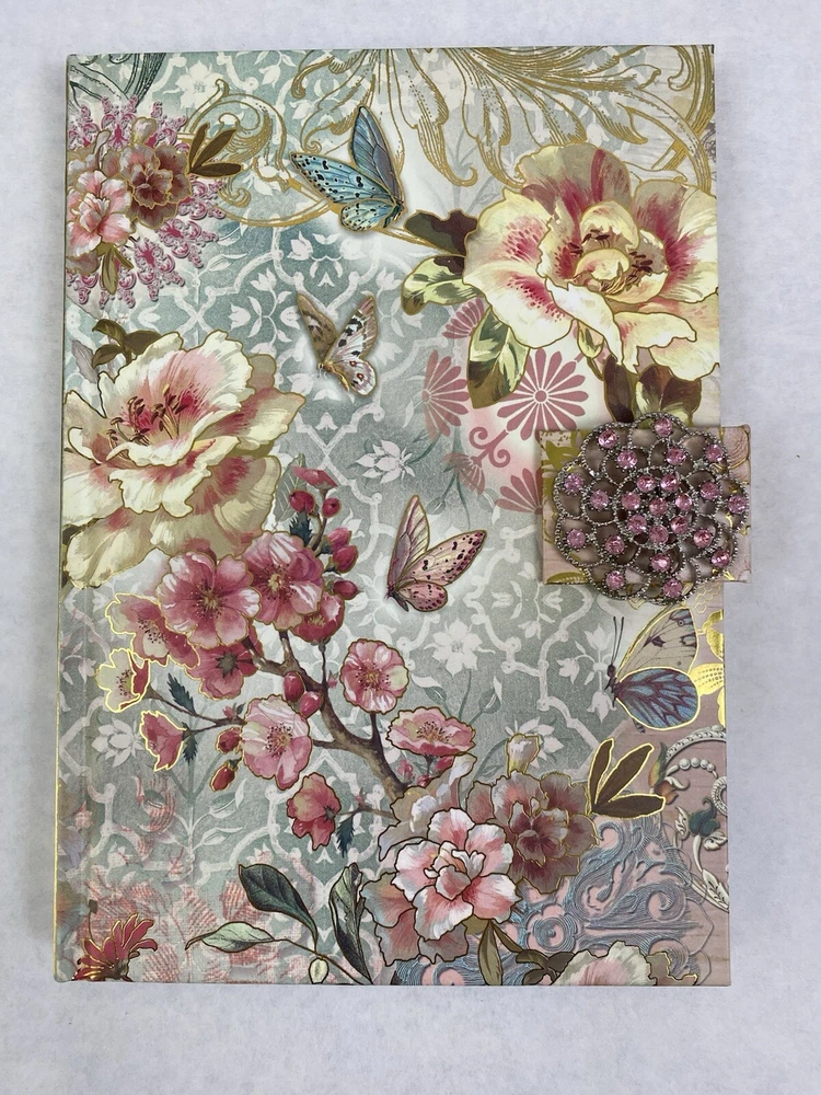 Punch Studio Butterflies & Flowers Jeweled Brooch Journal Hardcover 15016 New