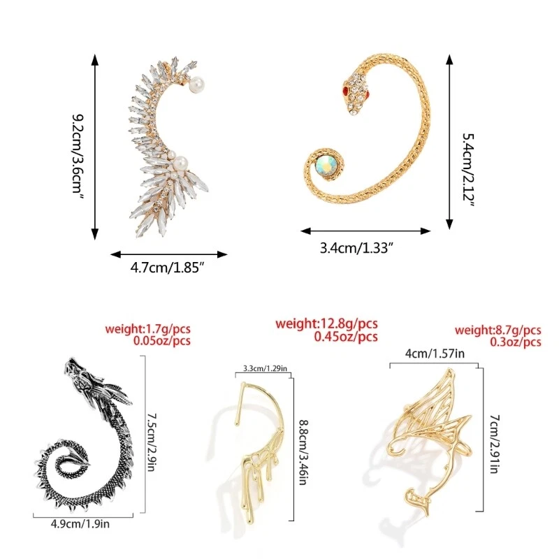 Features: Alloy Product: Fairy Ear Cuffs Earring Fashion/Retro/Aesthetics/Punk/Gothic Girl frieng/ Wife/Mom Applicable scene: Party/Streetwear/Halloween/Cosplay/Bar/Nightclub Specifications: Alloy Weight: 15g 3 4 5 6 7 8 9 10 11 Package Includes: 1x Ear Clip note: 1.Please allow 1-2cm errors due to manual measurement, make sure that you do not mind before you order. 2.Due to difference between different monitors, the picture may not reflect the actual color of the item.