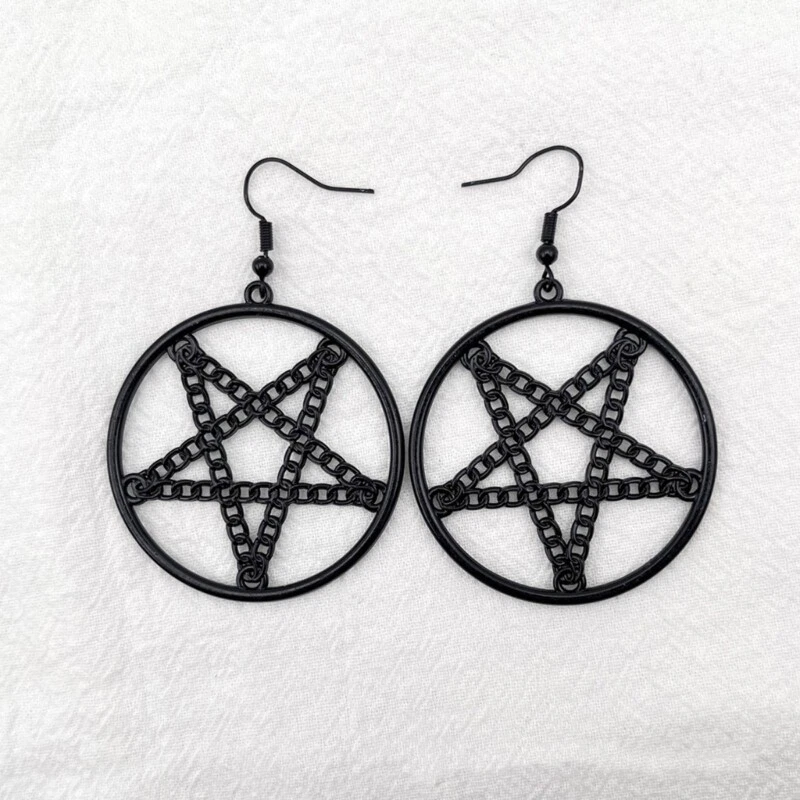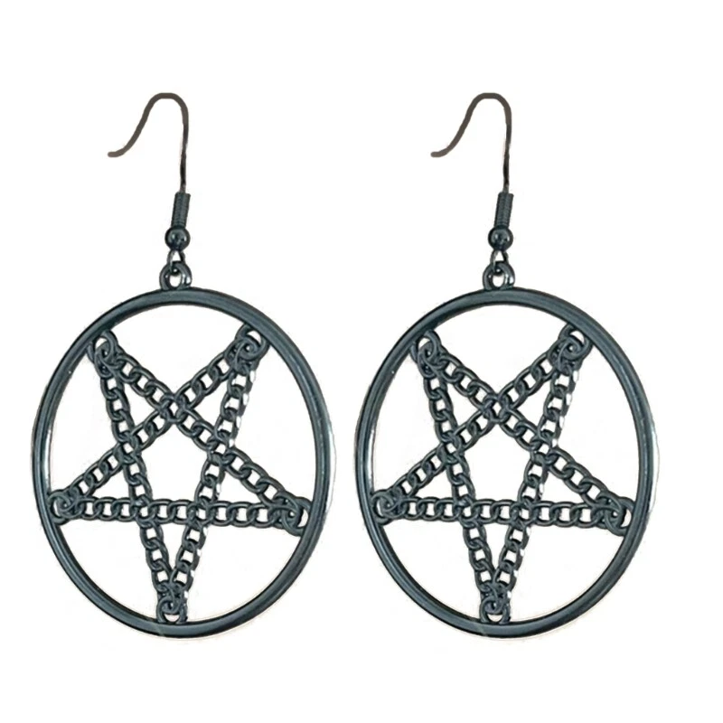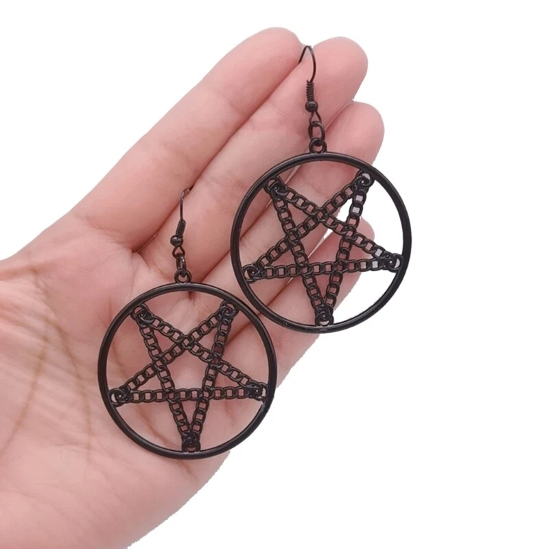 Features: Stand out from the crowd with this vintage and punk inspired Pentagrams Gothic Earrings Crafted with attention to detail, this necklace features a metal pentagrams pendant that exudes mystery and for Halloween enthusiasts, gothic fashion lovers, and trendsetters Whether you're attending a Halloween party, themed gatherings, or simply adding a touch of edgy to your everyday outfits, this is a must have accessory. your individuality and make a statement with this eye catching earrings that combines witchcraft vibes with fashion forward Specifications: Alloy Color:Black,Silver;(Optional) Size:Approx.6.5x4.5cm/2.56x1.77in Package Includes: 1Pair Earrings note: Please allow 1-2cm errors due to manual measurement,please make sure that you do not mind before you order. Due to the difference between different monitors, the picture may not reflect the actual color of the item.