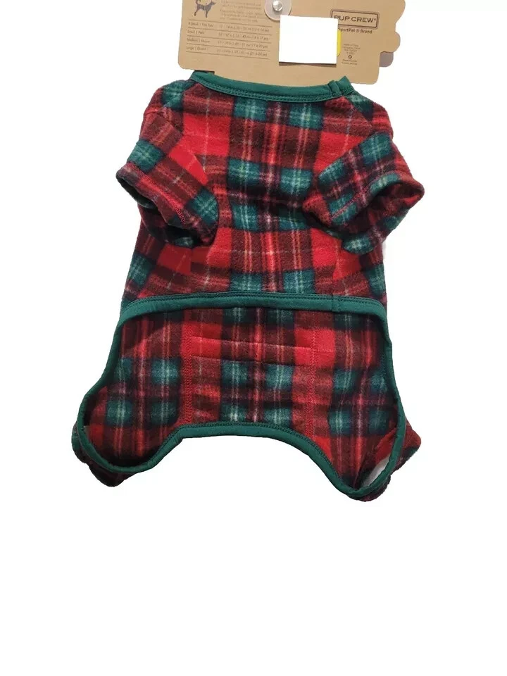 Adorable soft Fleece doggie pj's. Pj's are green & Red plaid with red package on bum with green bow! Too cute. Great for holiday pictures. Please take time to see all great items in my E-bay store. Buy with confidence! I have had my E-bay store for nearly 20 years with 100% positive feedback. I carry great gift and collector items. Please add me to your favorite store list. Also sign up for my store e-mail that comes out once every 2 weeks to see new items. If you have any questions please message me. Thanks for looking and I hope to do business with you soon. SMOKE FREE HOME I WILL COMBINE SHIPPING ON ALL MY ITEMS FOR YOU!
