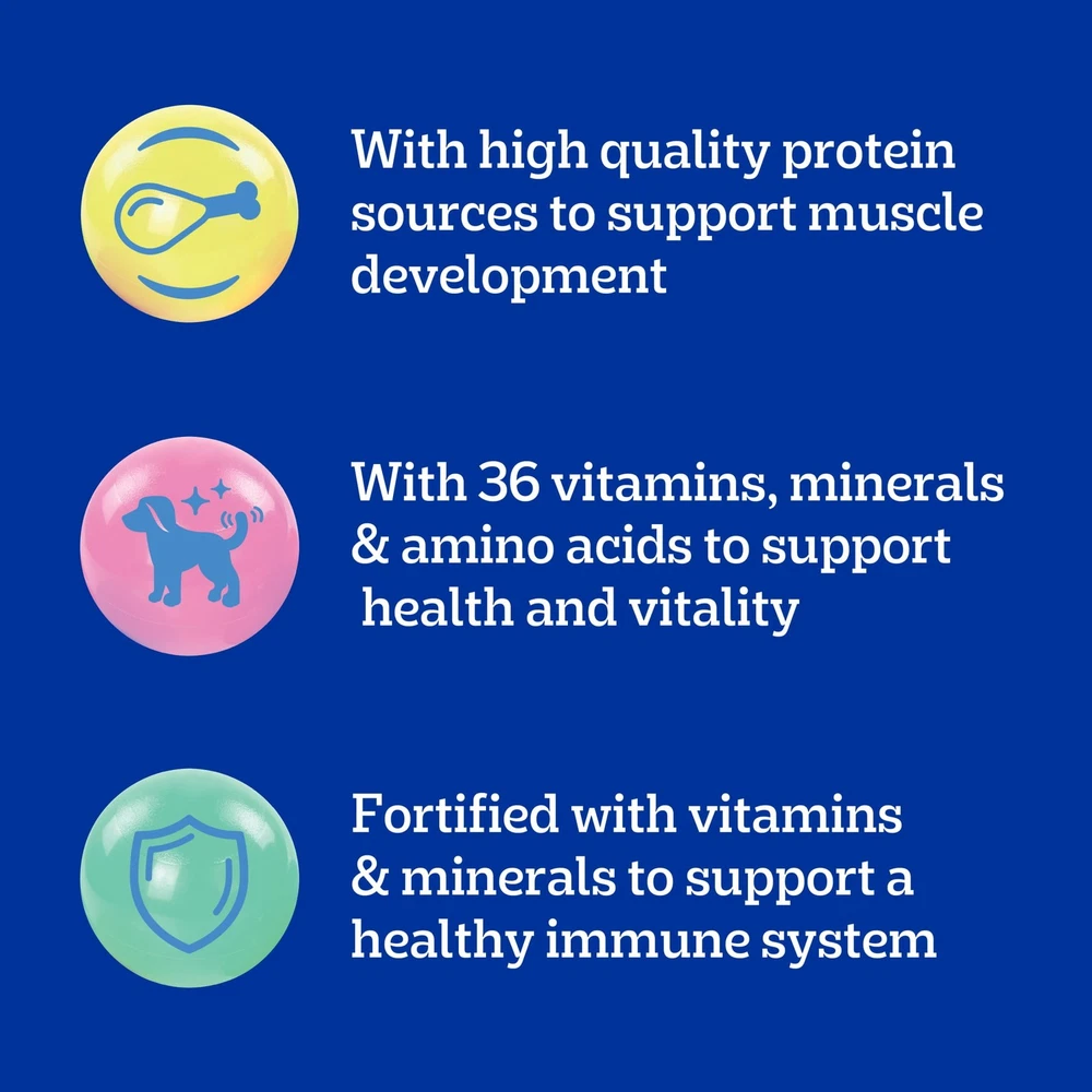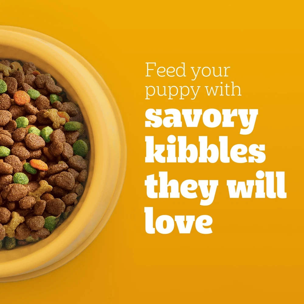 Dogs bring out the good in us. Pedigree brings out the good in them. Express your love for your dog by serving Pedigree Puppy Dry Puppy Food, Chicken, Rice, and Vegetable Flavor recipe. This great-tasting dry puppy food is specifically designed for puppies, made with high-quality protein sources to support muscle development, and is fortified with vitamins and minerals to support a healthy immune system. Pedigree Puppy Dry Puppy Food, Chicken, Rice, and Vegetable Flavor is also 100% complete and balanced for puppies and is made with key nutrients similar to mother’s milk. To support your puppy’s health and vitality, this dry puppy food is formulated with 36 vitamins, minerals, and amino acids. With no high fructose corn syrup, artificial flavors, or added sugars, Pedigree Puppy Dry Puppy Food, Chicken, Rice and Vegetable Flavor shows your puppy that you care. Made with high-quality protein sources to support muscle development in growing pups. Made with 36 vitamins, minerals, and amino acids to support your puppy’s health and vitality. Dry puppy food fortified with vitamins & minerals to support a healthy immune system. 100% complete and balanced food for puppies, bringing a nutritious meal to your pet. Crafted with no high fructose corn syrup, artificial flavors, or added sugar.
