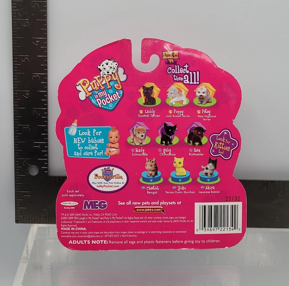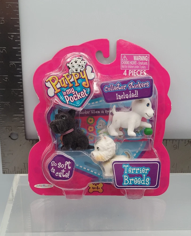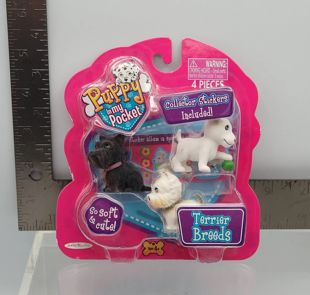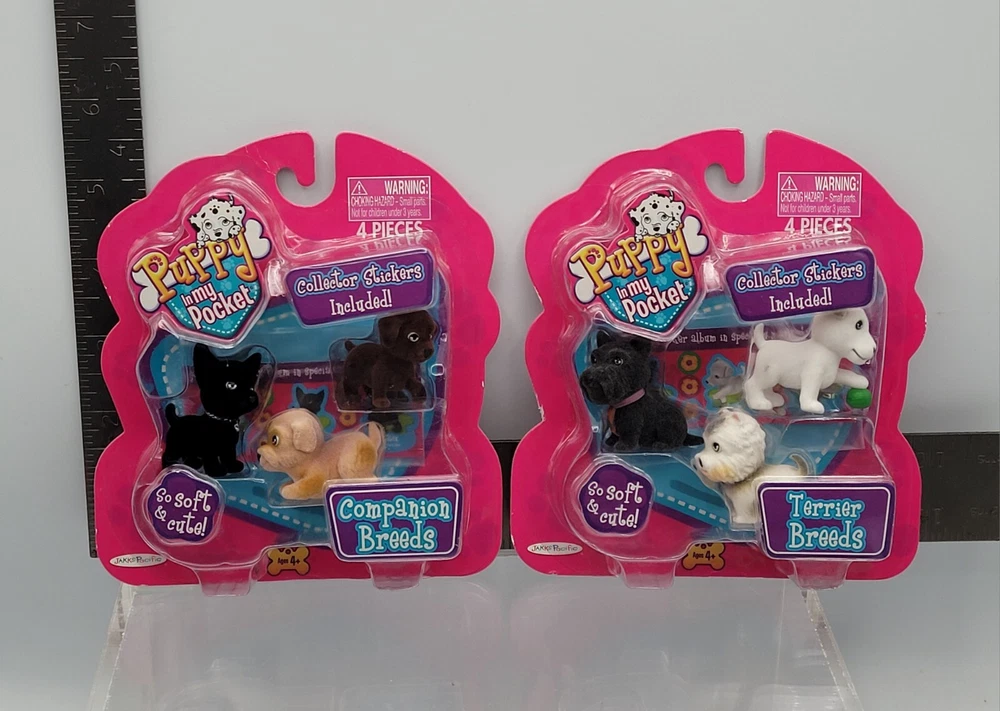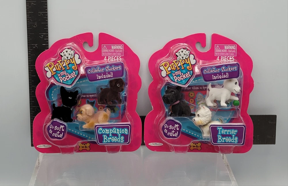 Puppy In My Pocket Dog Figure 6x Set Terrier + Companion Breeds 2009 Version NEW ✅️ ALL COLLECTIBLES COME SURFACE CLEANED AND SANITIZED, THEN REPACKAGED IN POLYBAG FOR ADDED PROTECTION ✅️ Item (outer packaging) comes cleaned and repackaged in polybag, ready to enjoy. Packs are factory sealed new from 2009. Includes: Terrier Breeds - 3 Dog figures + sticker book Companion Breeds - 3 Dog figures + sticker book Both packs are from the 2009 series. Cardboard backing comes in great shape with minimal wear. Each pack comes individually repackaged in a sealed polybag for added protection. Item ships from WI in sturdy packaging - item ships free within USA using USPS or equivalent service. International shipping is available, standard delivery rates apply. Please reach out with any questions, and thanks for looking! Lot #33172