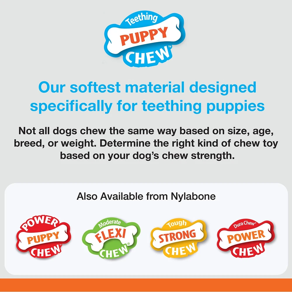 Puppy Ring Bone Chew Toy - Puppy Chew Toys for Teething - Puppy Supplies - Chicken Flavor, Small/Petite (1 Count) RELIEVES TEETHING DISCOMFORT - Made of 's softest material, this puppy teething chew toy is designed for puppies without any adult teeth FREEZE TO SOOTHE GUMS - Place this puppy chew toy in the freezer to provide even more teething relief ENTERTAINING RING BONE SHAPE - Textured chew toy keeps pups happy and encourages healthy chewing habits PROMOTES DOG DENTAL HEALTH - Ridges and nubs massage gums and help reduce plaque and tartar buildup as puppies chew MADE IN THE USA - Puppy bone toy is proudly made in the United States FOR X-SMALL PUPPIES - Size Petite chew toy intended for puppies up to 15 pounds FLAVOR PUPS LOVE - Features delicious chicken flavor throughout TRUSTED CHEW TOYS WITH HEART & PURPOSE - Every chew toy’s unique shape, individual texture, and gotta-have-it flavor is created with purpose and love to give your dog what they need, when they need it! Help your puppy get started on the right paw by establishing healthy chewing habits right from the start! Our Puppy Ring Bone chew toy is made with soft, puppy-friendly material to satisfy the chewing needs of teething pups and encourage positive chewing habits from a young age. With savory chicken flavor throughout, pups will stay occupied and happy. Plus, this puppy teething toy features ridges and nubs that help reduce plaque and tartar buildup as pup chew. This puppy teething ring is not for puppies with adult teeth or for powerful chewers. This chew is the perfect toy to comfort your teething puppy! What your dog chews matters! With destructive behavior among the leading reasons dogs are returned to shelters, we know healthy habits can make a life-changing difference. For 70 years, our family-founded brand continues to safely satisfy dogs’ chewing instincts and help them stay in loving forever homes! Shipping We offer FREE shipping on all orders! We ship within Three business days of payment, usually sooner. We use a selection of shipping services such as UPS, FedEx, USPS etc. We only ship to the lower 48 states, no APO/FPO addresses or PO Boxes allowed. Local pickups and combined shipping options are not provided at this time. Return You can return a product for up to 30 days from the date you purchased it. Any product you return must be in the same condition you received it and in the original packaging. Please keep the receipt. Payment We accept payment by any of the following methods: PayPal Please pay as soon as possible after winning an auction, as that will allow us to post your item to you sooner! Feedback Customer satisfaction is very important to us. If you have any problem with your order, please contact us and we will do our best to make you satisfied. Contact Us If you have any queries, please contact us via ebay. We usually respond within 24 hours on weekdays. Please visit our eBay store to check out other items for sale! Thank you for shopping at our store.