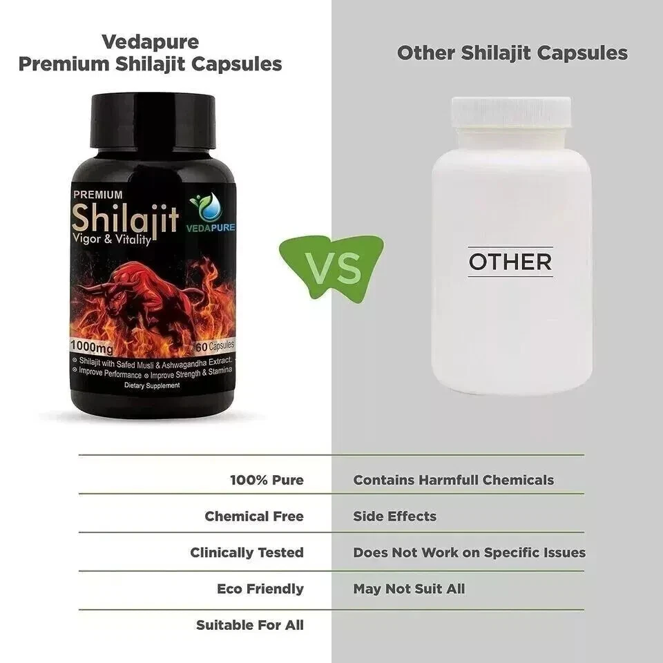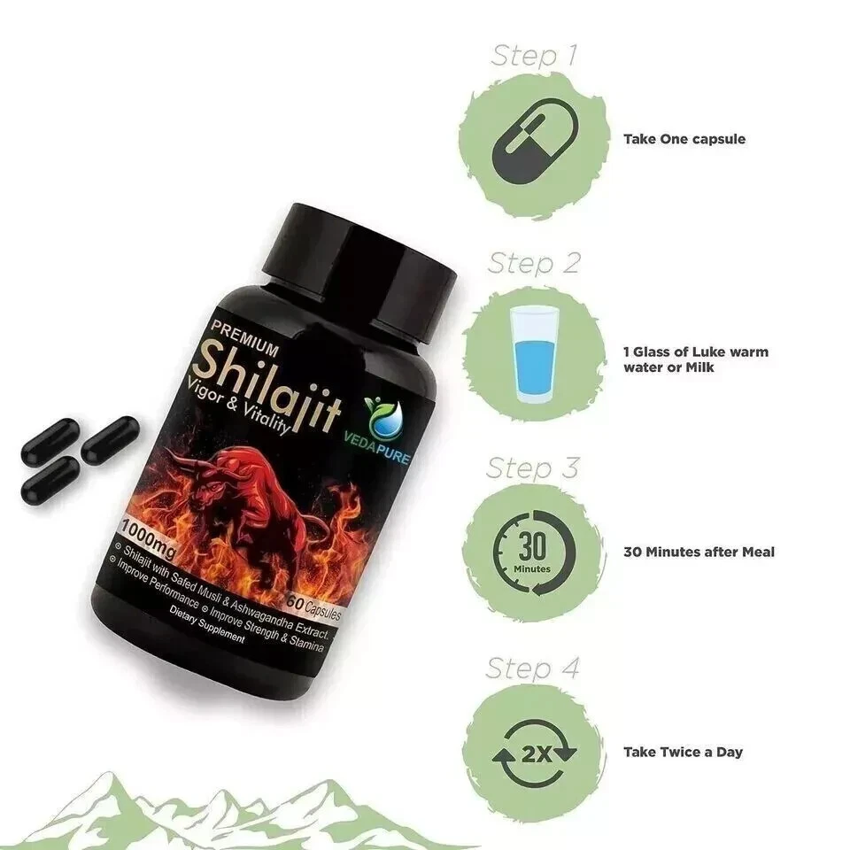 Product Description Pure 100% Himalayan Shilajit, Soft Resin, Organic, Extremely Potent, Fulvic Acid 60 Caps Free Ship Pack of 1 *************************************** Energy Booster :- ayurvedic shilajit capsule helps boost immunity, improve metabolism & support overall health Shudh Shilajit ( purified shilajit 1000mg) :- Vedapure shilajit capsules for men is pure extract of shilajit, safed mulsi & Ashwagandha Himalayan Shilajit :- Vedapure shilajit is an original himalayan shilajit. Dosage : Take one shilajit capsule twice a day with lukewarm water or as directed by a healthcare professional. Quantity: 60 Capsule s ; Package Contents: 1 Bottles of Shilajit Capsules; Shelf Life: 1095 Days; Ingredient: Vegetarian; Item Form: Capsule How We Ship ·We ship all items within 3 Working Days of receiving confirmed payments. Items are shipped from India Ship rocket or India Post .YOU WILL GET TRACKING number JUST AFTER WE SHIP PRODUCT. Item will be delivered maximum 12-25 Working Days. Please consider few more days for your local customs delay and formalities. Payments We accept all payment modes like PayPal, debit and credit card and other available through eBay managed payment. Free Return Policy: We allow 100% Money back Guarantee to our customers within 30 days of the receipt of the goods. If in any way you are not satisfied with our products you can send it back to us within 30 days of the receipt of goods. Please inform us before returning us the goods so that we can assist you in returning the goods.