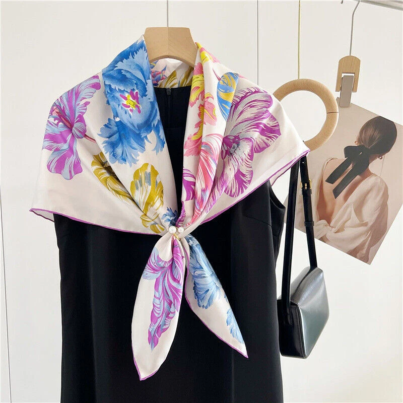 $ 23.76100% Chiffon Silk Camellia Print Wrap Scarf Sarong Beach Hand Rolled 54x54