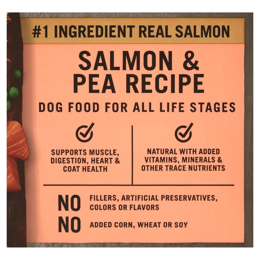 Our Pure Balance Wild & Free Grain-Free Salmon & Pea Recipe Dry Dog Food is made with carefully selected ingredients to ensure your dog gets all the nutrition they need. This grain-free Salmon & Pea recipe features real salmon as the first ingredient and has added vitamins, minerals, and other trace nutrients to help support your dog's muscle, digestion, heart, and coat health. Plus, it has no fillers or artificial preservatives, colors, or flavors, and has no corn, wheat, or soy, making it ideal for dogs of all life stages and especially dogs with food sensitivities. Whether your canine companion has seen many years at your side, is a fully blossomed adult, or still has some growing to do, our Pure Balance Wild & Free Grain-Free Salmon & Pea Recipe Dry Dog Food gives your dog the best ingredients, pure and simple. At Pure Balance, we believe in one idea, the best nutrition for your pet starts with ingredients you can trust. Each of our super premium recipes are made with natural ingredients with added vitamins, minerals and other nutrients to ensure your pet gets the nutrition they need. It's the Pure Balance way. Pure and Simple. Pure Balance Wild & Free Salmon & Pea Recipe Dry Dog Food, Grain-Free, 24 lbs: Dry dog food for dogs of all life stages Grain-free formula with no fillers, artificial preservatives, artificial colors, or artificial flavors No added corn, wheat, or soy Supports muscle, digestion, heart, and coat health Natural with added vitamins, minerals, and other trace nutrients Real salmon is the first ingredient Follow the convenient feeding instructions listed on the back of the packaging to ensure your dog is receiving the appropriate amount for their size during feeding times
