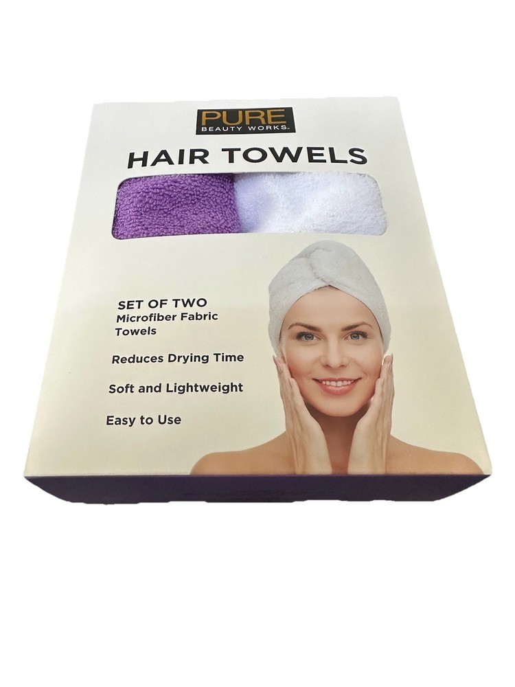 Pure Beauty Works Hair Towels Set Of 2 Microfiber Towels Purple & White NEW π Reduces Drying Time Soft & Lightweight Easy to Use
