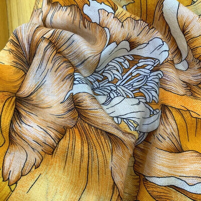 Pure 14 Momme Twill Silk Scarf Floral Print Square Shawl 35 Inch Wrap Bandanna