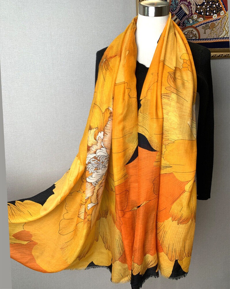 $ 23.76100% Chiffon Silk Camellia Print Wrap Scarf Sarong Beach Hand Rolled 54x54