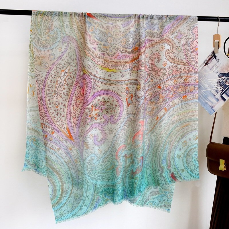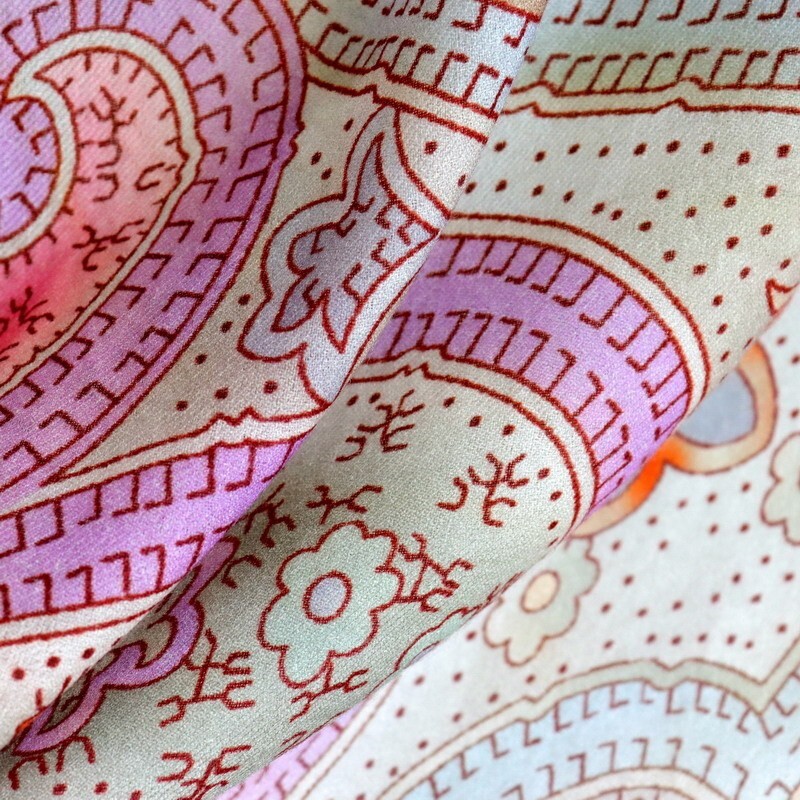100% Silk Vintage Beige Paisley Scarf for Women 68x68cm Square Bandana Wrap