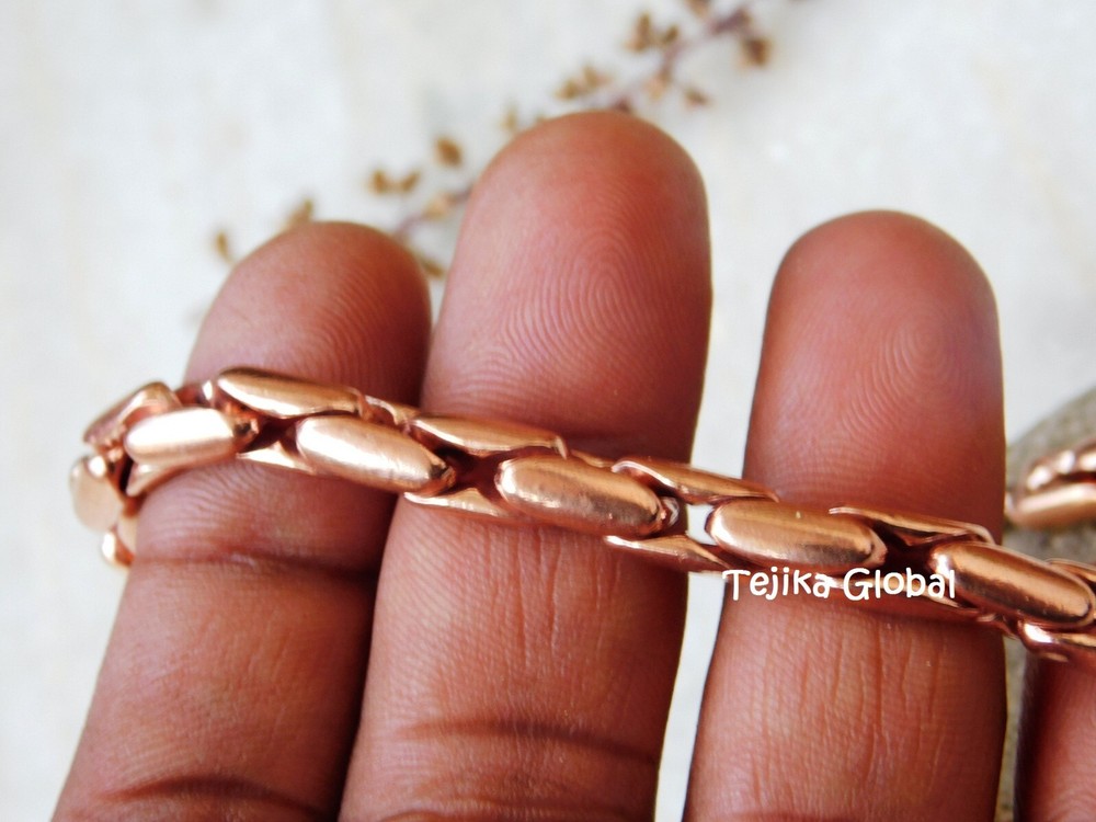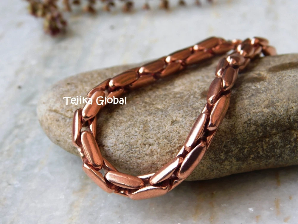Copper Arthritis Heavy Bracelet Link Chain handmade Energy Pain unisex bracelets Copper chain bracelet Handmade chain Bracelet Length : 6, 6.5, 7, 7.5, 8, 8.5, 9, 9.5, 10 Inch This pure solid copper bracelet is an ideal choice for those who are looking for a stylish and trendy accessory. It features an arthritis chain link design that is perfect for both men and women. The bracelet is made of high-quality copper metal that is known for its antioxidant and anti-inflammatory properties, making it a great addition to your jewelry collection. The bracelet comes in a beautiful copper color that is sure to complement any outfit. It is perfect for both casual and formal occasions. The bracelet is designed to be worn on any finger and is available in different sizes to ensure a comfortable fit. Get your hands on this stunning piece of jewelry today and add a touch of elegance to your wardrobe.