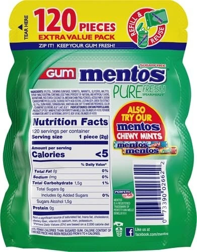 Pure Fresh Sugar-Free Chewing Gum with Xylitol Spearmint 120 Piece Bulk Res