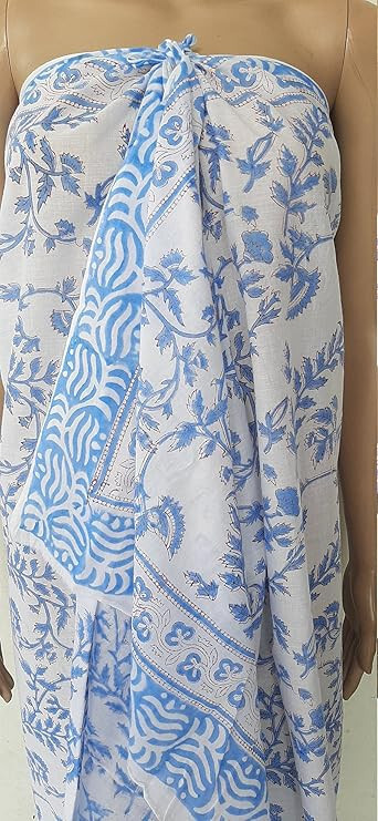 Elegantly designed with a touch of summer flair, this Wrap Cover Up Sarong is a versatile addition to any beach-goer's wardrobe. The one-piece cotton scarf features a vibrant blue and multi-colored floral print, offering a playful yet modest way to enjoy sunny days by the water. Its lightweight and reversible nature make it a perfect companion for both the poolside and the party. Crafted in India, the sarong is machine washable for easy care, ensuring it remains a staple in your collection season after season. The bikini top and bottom styles are complemented by the sarong's relaxed fit, providing both comfort and style without compromising on ease. Whether you're lounging or dancing to the rhythm of the waves, this cover up is sure to enhance your beach experience. Product Description Item - 1 PC Cotton Sarong. Usage - Sarong , Bikini Cover up , Beach Wear , Pareo , Swim Wear Dress etc. Fabric -100% Cotton Color - Blue/White Fit Up - One Size Size (Approx.) - Length - 72" Inch ( 175 Cm ) Width - 42" Inch ( 106 Cm ) Product Description * This Beautiful Sarong or can be called as Pareo/Sarong is made with super fine quality cotton and designs have been crafted by Hand Block Prints. * Sarong is a long piece of cloth worn wrapped round the body and tucked at the waist or under the armpits. *A perfect blend of style and comfort, the sarong is crafted from lightweight, breathable cotton, ensuring you stay cool and relaxed. * Very comfortable to wear in both hot or cold weather. * Wash care: Hand wash in cold water. Feedback We strive our best to satisfy our customers to the fullest. In case you are not satisfied, please contact us immediately. We will do everything Possible to you. If we have earned your satisfaction, let your friends know about it! Also, please spare a few moments to give us some appreciation through eBay ratings. Have a nice day