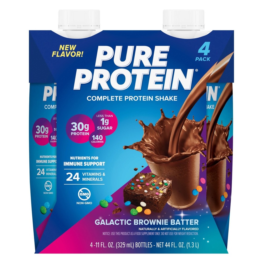Elevate your fitness journey with Pure Protein Galactic Brownie Batter Shakes, the ultimate blend of taste, nutrition, and convenience. Each serving delivers a powerful 30 grams of complete protein, providing your body with the essential building blocks needed for muscle growth and recovery. Whether you're aiming to build lean muscle or maintain your current fitness level, these shakes are designed to support your goals effectively and deliciously. (1) Pure Protein products contain 5g of sugar or less. (2) Not suitable for people with galactosemia. HIGH PROTEIN, LOW SUGAR(1), GREAT TASTE: Enjoy the delicious, low-fat, non-GMO Pure Protein Galactic Brownie Batter Shakes. These shakes are designed to support muscle strength and are gluten-free, with only 140 calories, 24 vitamins and minerals—vitamins A, C, D, and E plus Zinc for immune health—and less than 1g of sugar 30G OF COMPLETE PROTEIN: Each serving of Pure Protein Galactic Brownie Batter Shakes delivers 30g of high-quality protein, providing the essential building blocks your muscles need to grow and recover. Achieve your fitness goals with this complete protein source MADE WITH MILK PROTEIN ISOLATE: These highly digestible shakes are suitable for those who are lactose conscious(2). The milk protein isolate provides all 9 essential amino acids for optimal muscle support and is ultra-filtered for more protein with fewer calories and less sugar KETO-FRIENDLY FOR A HEALTHY LIFE: Pure Protein Galactic Brownie Batter Shakes are perfect for both women and men focused on fitness. Whether your goal is muscle gain or getting lean, these shakes offer sustained energy to help you succeed RICH GALACTIC BROWNIE BATTER FLAVOR: Indulge in the rich, creamy taste of a Galactic Brownie Batter milkshake. Perfect for a pre- or post-workout boost, or as a convenient protein-packed treat any time of day GREAT ON THE GO: Stay on track even when you're pressed for time. Combine Pure Protein Galactic Brownie Batter Shakes with a healthy snack like fruit or vegetables to fuel your body with the nutrients and all 9 essential amino acids it needs to power through your day