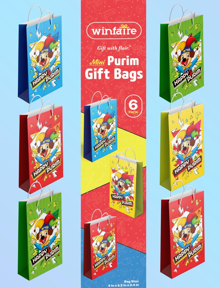 Purim Gift Bags - 4 Pack Small Purim Bags for Mishloach Manot - Purim Boxes and Bags Bulk - Happy Purim Bags and Boxes Purim Sameach! Present your Mishloach Manot in amazingly fun style! PURIM GIFT BAGS WITH ROPE HANDLES: Our twisted rope handle bags are reusable and strong providing for a sturdy hold on your Mishloach Manos Purim gift bags and boxes, making delivery simple. PURIM BAGS: These adorable and durable purim gift bags kids come in a selection of bright, vibrant colors and fun purim designs. Made of premium quality hard paper it is strong enough to stand on its own. 6 PACK PURIM BAGS: Impress your loved ones with our beautifully designed Purim gift bags. Enough to gift all your family and friends CONVENIENT SMALL SIZE: Our happy purim bags is the perfect size, big enough to fit many food items and gifts and small enough for little hands to carry. FUN PURIM DESIGN: Our Purim Gift Bags and party favor boxes collection are embellished with fun and bold Purim designs. celebrates the Jewish faith with gifting items for Purim, Hanukkah, and all year round. Purim Gift Bags With Rope Handles: Our twisted rope handle bags are reusable and strong providing for a sturdy hold on your Mishloach Manos Purim Gift Bags and boxes, making delivery simple. Purim Bags: These durable purim gift bags come in a selection of bright, vibrant colors and fun purim designs. Made of premium quality cardboard paper it is strong enough to stand on its own. 6 Pack Purim Bags: Impress your loved ones with our beautifully designed Purim gift bags. Enough to gift all your family and friends. Convenient Mini Size: Our mini Happy Purim bags measure 4” x 6.5” x 2.4”,big enough to fit many food items and gifts yet small enough for little hands to carry. Fun Purim Design:Our Purim Gift Bags and party favor boxes collection is embellished with fun and bold Purim designs. , a brand that celebrates the Jewish faith with gifting items for Purim, Hanukkah, and all year round