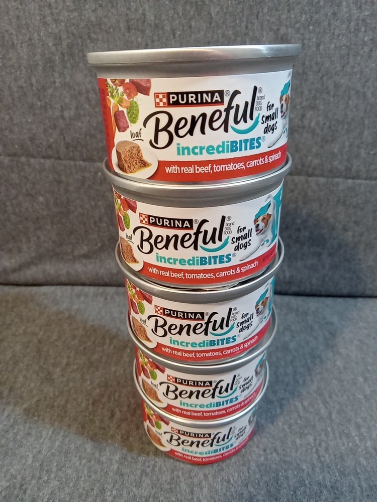 Purina Beneful IncrediBites Wet Food Beef Tomatoes For Small Dogs 3 Oz Lot Of 5 The product is a lot of 5 cans of Purina Beneful IncrediBites Wet Food in Beef and Tomato flavor, specifically designed for small adult dogs. Made with high protein ingredients like beef, tomatoes, carrots, and spinach, this product is ideal for providing nutritious and delicious meals for your furry companion. With an expiration date of 7/27, you can trust that your dog is getting fresh and wholesome food made in the United States by a trusted brand like Purina. *** All Items Purchased On OR Before 1 PM EST Will Be Shipped The Same Day *** *** Item Descriptions *** Brand - Purina Condition - New Type - Wet Dog Food Food Flavor - Real Beef, Tomatoes, Carrots, Spinach For - Adults Size - 3 Oz. UPC# - 017800189705 Expiration Date - 7/2027
