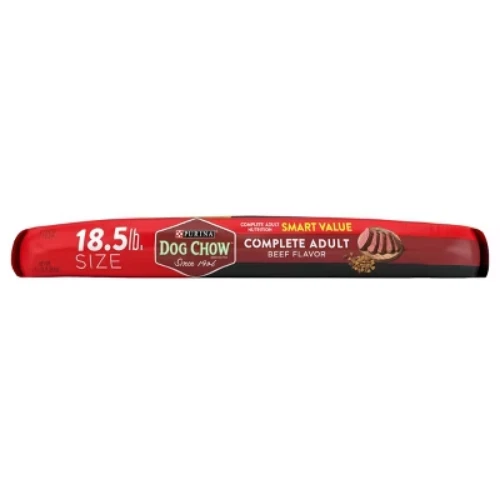 Description Give your dog the nutrition he needs along with the taste he loves when you serve up Purina Dog Chow Complete Adult With Real Beef dry dog food. This delicious recipe is made with real beef and other high-quality ingredients, giving him a wholesome meal option that you can both feel good about. With 23 essential vitamins and minerals in every serving, this dry dog food helps support your dog's overall health and wellness. Crafted without artificial flavors, this recipe provides 100% complete and balanced nutrition that adult dogs need and supports immune health. High-quality protein, like real beef, in every serving helps support your dog's strong muscles, so he can maintain his active lifestyle. Purina Dog Chow is carefully crafted by employees who trust it enough to feed it to their own dogs. Tempt your dog to his dish with the delightful flavors found in this dry dog food recipe, and rest easy knowing he's getting a nutritious meal. highlights Made with real beef 100% complete and balanced for adult dogs Contains 23 essential vitamins and minerals Supports your dog's immune system Highly digestible formula