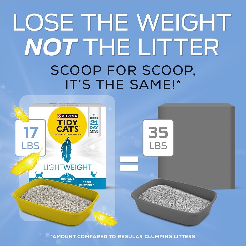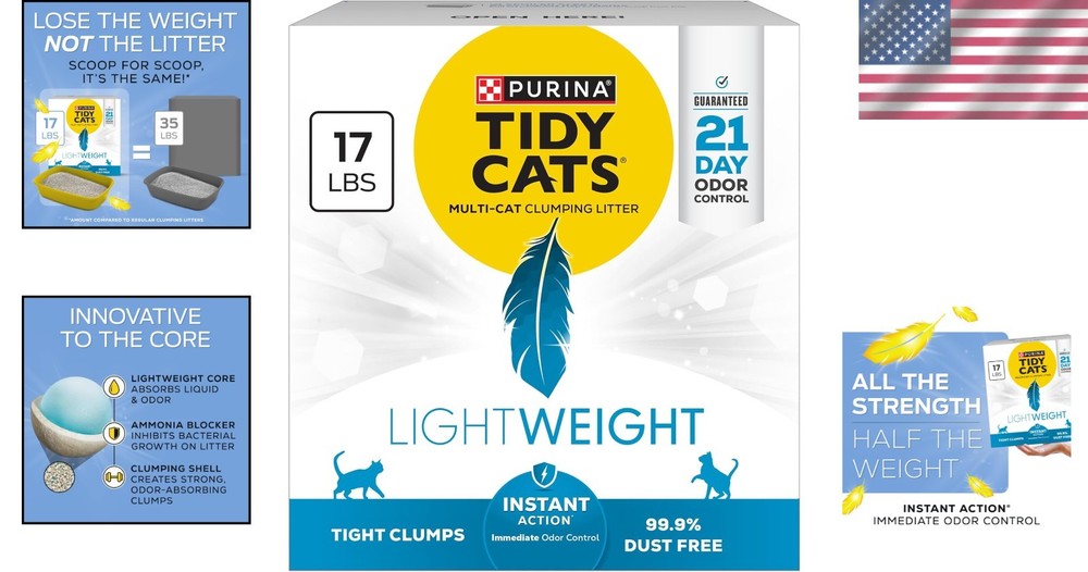 Purina LightWeight Cat Litter for Fresh Homes - Clumping & Odor-Free, 17 lb. ‹ › ‹ › ‹ › ‹ › ‹ › ‹ › ‹ › ‹ › ‹ › ‹ › ‹ › Purina LightWeight Cat Litter for Fresh Homes - Clumping & Odor-Free, 17 lb. Features: Odor Control: Offers 21-day odor control that prevents ammonia odor when used as directed. Lighter Formula: 50% lighter than the leading clumping litter, ensuring you get less weight without compromising on quality. Freshness: Infused with a Clean Linen scent for excellent odor control, keeping your home smelling fresh. Low Dust: 99.9% dust-free formula ensuring a cleaner environment for you and your feline friends. Versatile: Excellent for any multiple cat litter box, featuring a slow-release deodorizing system for ongoing odor control. Benefits: Conquer litter box maintenance effortlessly with lightweight, clumping formula. Innovative design combats strong smells with immediate odor control. Easy to carry and pour, making clean-up a breeze. Forms strong, tight clumps for quick and easy scooping, minimizing mess. Intended for continuous performance, allowing your cats ample time to enjoy their clean space. Why choose Purina LightWeight Cat Litter? Are you exhausted from the heavy lifting and strong odors that come with traditional cat litter? Embrace the effortless cleanliness and freshness of Purina LightWeight Cat Litter. Designed specifically for busy cat owners, this innovative clumping litter traps and prevents ammonia odors for up to 21 days, ensuring your home remains inviting and pleasant. At 50% lighter than conventional litter, it offers unparalleled convenience without sacrificing effectiveness. Experience the magic of clean, easy-to-scoop litter that leaves your home smelling delightful every day. Say goodbye to litter box woes and hello to a fresher, more inviting home with Purina LightWeight Cat Litter. Shipping Free & Fast Shipping - We offer free shipping to most of the USA with a normal delivery time of 3-7 days. However, due to the current situation, additional delivery time (up to 3 weeks) may be required for some items. Alternative Carriers - We may use alternative carriers (e.g. USPS, FedEx, UPS, etc.) to ensure your package arrives safely and on time. Due to the use of multiple carriers, we are unable to provide a tracking number automatically. Handling Time - Orders are processed and shipped within 1-2 business days of receiving cleared payment. Shipping Restrictions - Shipping to Alaska, Hawaii, Puerto Rico, Guam, and other US territories may incur shipping charges or delivery restrictions. Please contact us before ordering, or your order can be refunded/cancelled. State Restrictions - There may be restrictions based on your state of purchase. For example, certain items may not be shipped to California due to state regulations. Contact for Tracking Updates - If you require tracking updates or have any concerns about the delivery of your order, please feel free to contact us, and we will be happy to assist you. Return 30-Day Hassle-Free Returns - We want you to be completely satisfied with your purchase. If you are not, you can return the item within 30 days of receiving it for a full refund or exchange. Easy Return Process - To start a return, simply contact us and we will provide you with a prepaid return shipping label and detailed instructions. Restocking Fee - There are no restocking fees for returns. However, the buyer is responsible for return shipping costs if the return is not due to a seller's error. Refund Processing Time - Refunds will be processed within 5 business days of receiving the returned item in its condition. Payment We accept all major credit cards, PayPal, and Apple Pay for your convenience. Your payment information is secure and encrypted to ensure a safe and seamless transaction. Please complete your payment within 3 days of purchase to avoid any delays in shipping. Feedback Your feedback is extremely important to us. We strive to provide the best products and customer service possible. If you are satisfied with your purchase, please take a moment to leave us a positive review. If you have any concerns or issues with your order, please contact us before leaving negative feedback. We are committed to resolving any problems and ensuring your satisfaction. Contact Us If you have any questions or concerns, please feel free to out to our customer support team. You can contact us through the eBay messaging system. We are available Monday to Friday, 9:00 am to 5:00 pm EST, and we will do our best to respond to your inquiry within 24 hours. Buy it now and enjoy a pleasant shopping experience!
