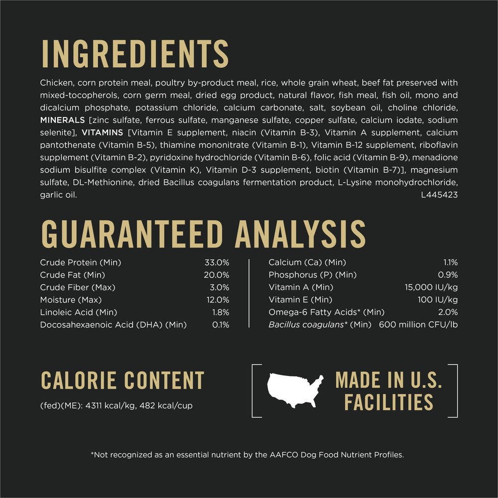 Purina Pro Plan High Protein Small Breed Puppy Food DHA 18 Pound (Pack of 1) Description Get your puppy's life started out right with Purina Pro Plan Brand Dog Food Puppy Small Breed Chicken and Rice Formula dry puppy food. This puppy kibble is high in protein, including chicken as the first ingredient, to meet the needs of highly active small dogs. With no artificial colors or flavors, every ingredient is carefully selected for a specific nutritional or functional purpose, giving your puppy specialized nutrition to meet his needs during the early stages of life. With its bite-sized kibble, this puppy dog food helps make chewing easier for your small dog, and the highly digestible puppy food formula promotes nutrient availability and absorption so your puppy can get the most out of every bite. Real poultry in this small breed puppy food helps provide for your dog's protein needs. Make this super-premium Purina dry puppy food part of your small breed companion's daily diet, and keep him wriggling with happiness. Features: High in protein to meet the needs of highly active small dogs Real chicken is the first ingredient Used to be known as FOCUS Chicken and Rice Formula DHA from omega-rich fish oil nourishes brain and vision development Product Details: Handling We will ship all orders within 1 business day of payment. Delivery We Do Not Ship Outside of the Continental US. Return Policy All items qualify for returns within 30 days of receipt. Buyer is responsible for return shipping on any item that is not damaged. Feedback We take our reputation seriously, we buy and sell online, so we understand the value of trust. If you are unsatisfied with your order, please contact us and we will work with you to resolve it to your satisfaction.