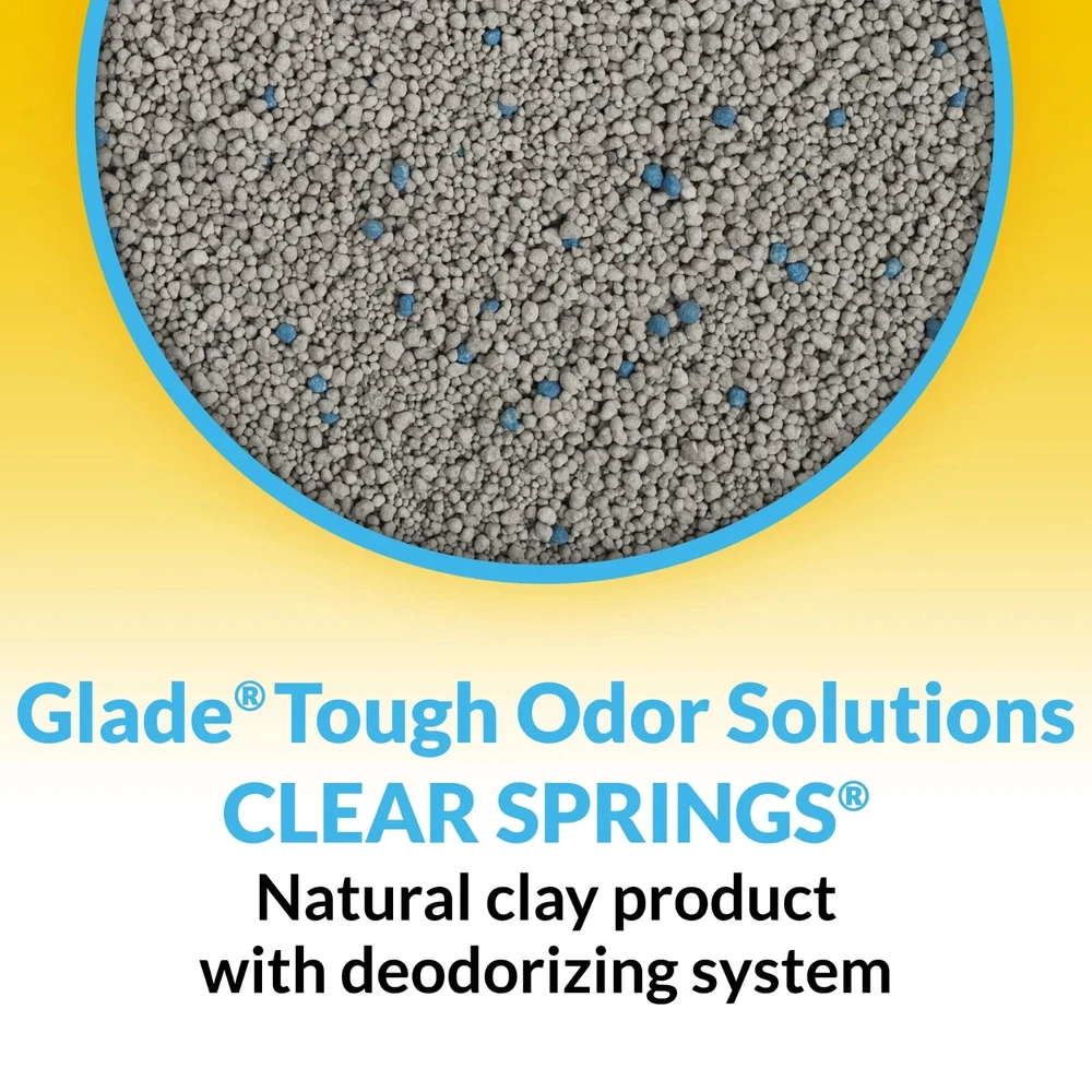 Combine the power of two trusted names in odor control in your home with Purina Tidy Cats Clumping Cat Litter, Glade Clear Springs Deodorizing, 35 lb. Pail. This clumping multi cat litter neutralizes ammonia, urine and fecal odors, keeping each litter box smelling clean and pleasant for 10 days when used as directed. Backed by the power of Glade, the clay cat litter defends against strong scents, leaving a fresh fragrance behind. Our low-dust clay clumping cat litter solution forms strong, tight clumps, making litter box maintenance a simple task. Formulated for multiple cats, this scented clumping cat litter stands up to regular use by all your feline family members, and the moisture-locking technology keeps them dry and comfortable. Make it simple to check kitty litter box cleaning off your list with the powerful odor control and performance you expect found in Purina Tidy Cats With Glade Clear Springs clumping clay cat litter. Please note that this cat litter does not come with any accessories. Purina Tidy Cats Clumping Cat Litter, Glade Clear Springs Deodorizing, Low Dust, 35 lb. Pail Clumping kitty litter formulated for multiple-cat households forms strong, tight clumps for easy cleanup and locks in moisture to keep cats dry and comfortable Backed by the 70 years of expertise of Tidy Cats, the brand most often recommended and personally used by veterinarians, this low dust clay litter formula enables a clean pour No accessories included Powerful Glade Clear Springs clumping scented cat litter from two trusted brands adds a pleasant fragrance to your litter box area